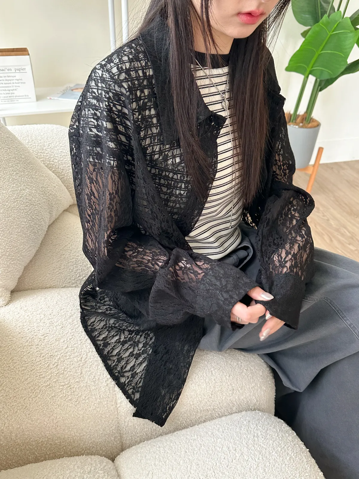 (闆娘私心愛.ᐟ.ᐟ)透透蕾絲襯衫-2col