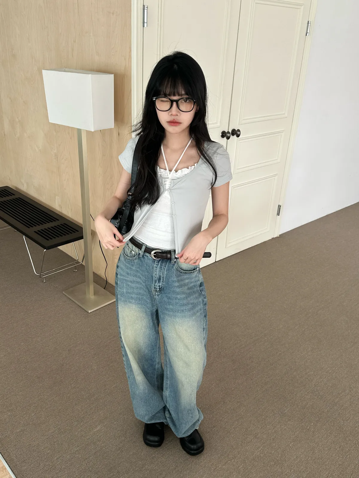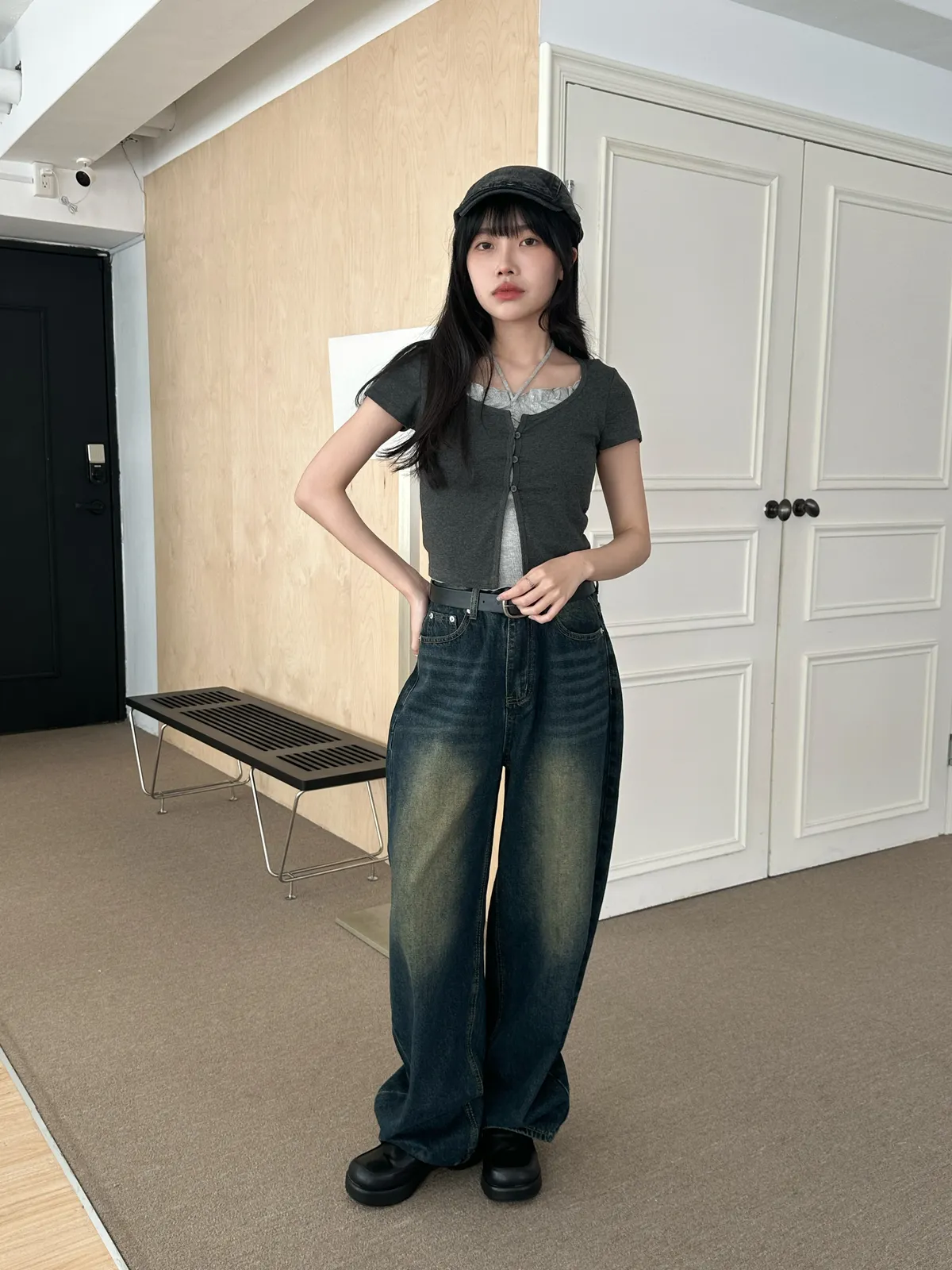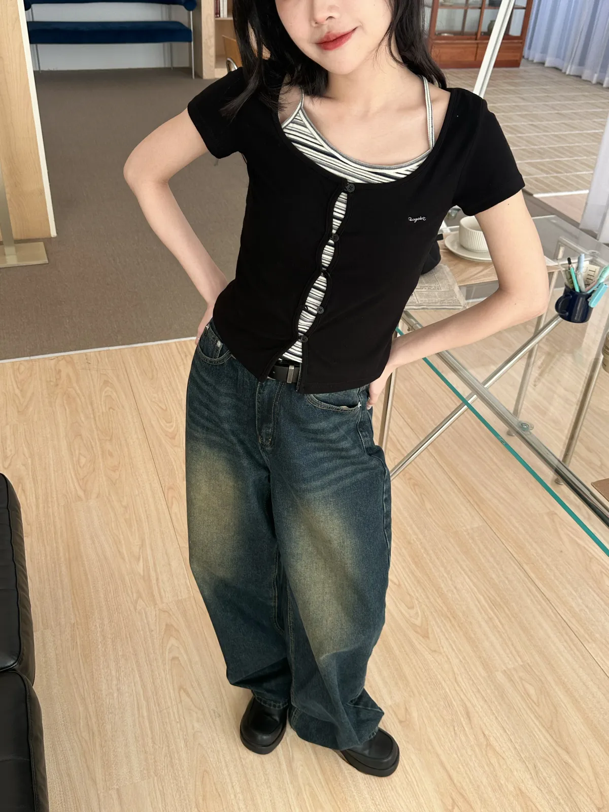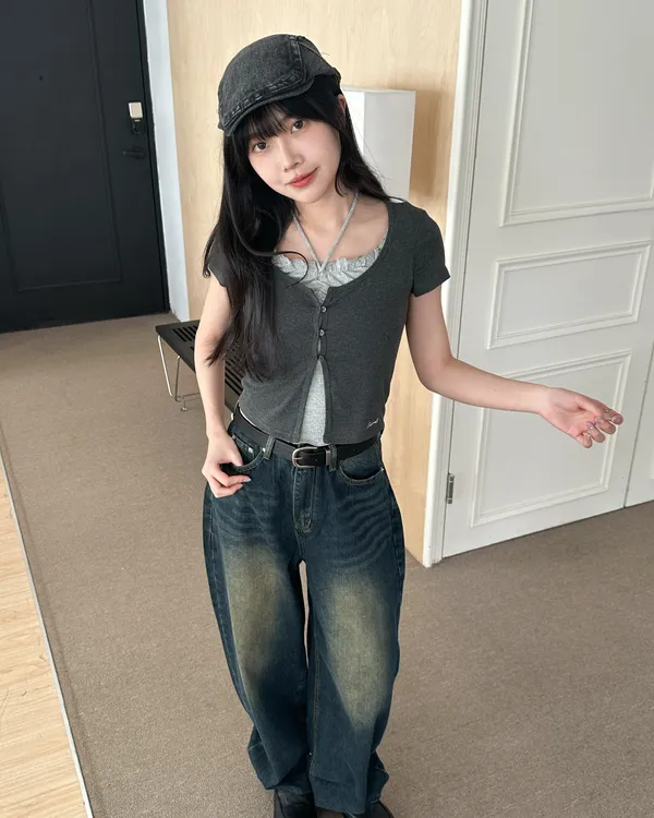 小編自留♡⃛ ̖́-設計釦牛仔寬褲(2col)