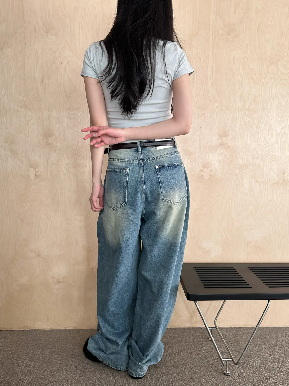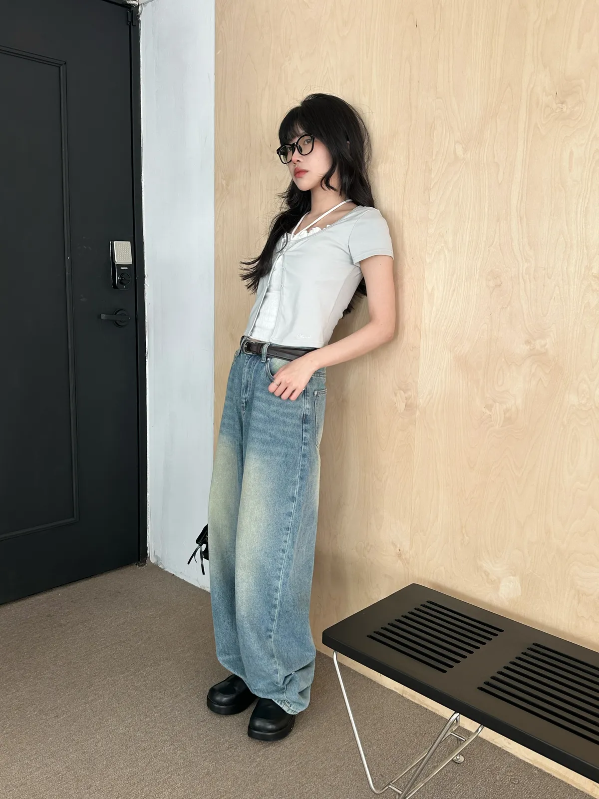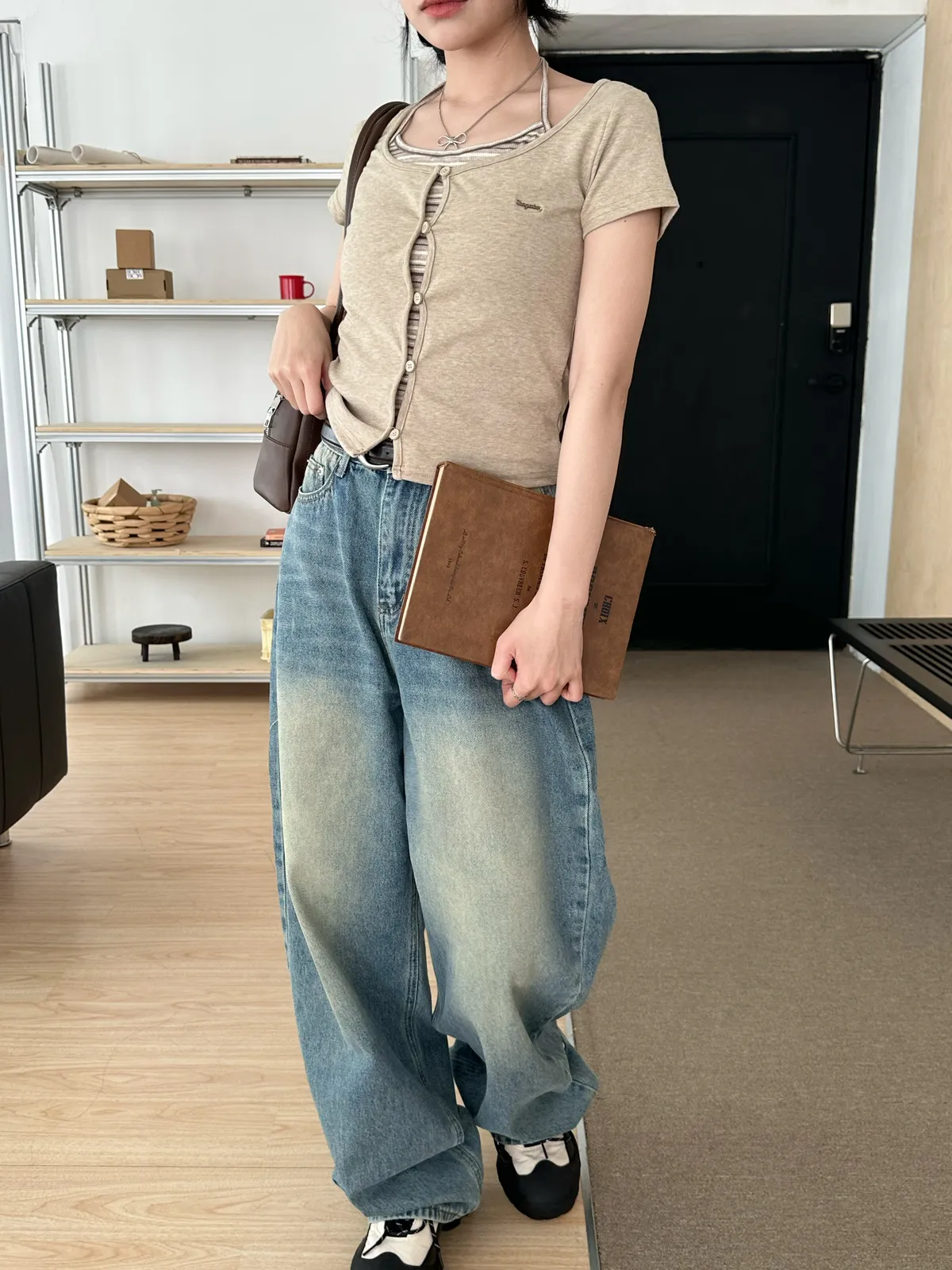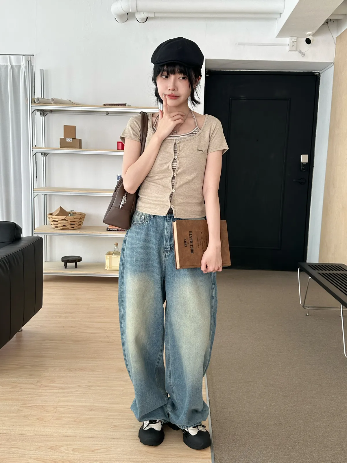 小編自留♡⃛ ̖́-設計釦牛仔寬褲(2col)