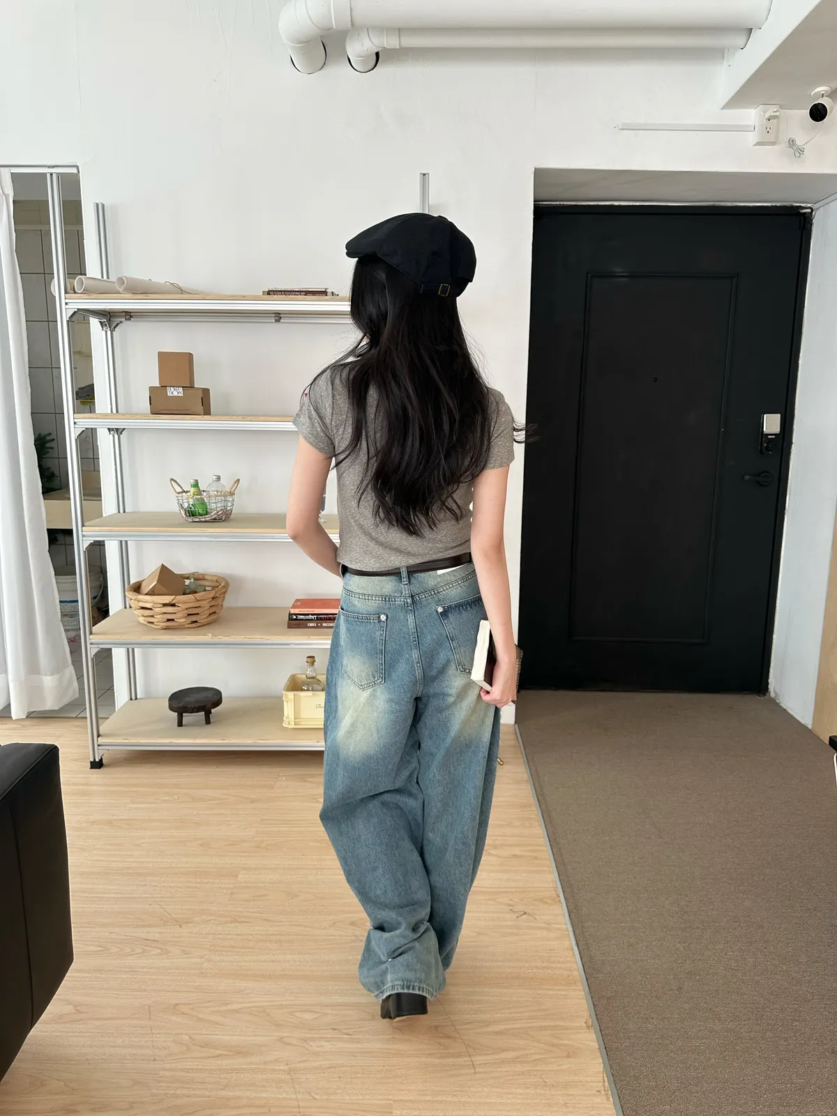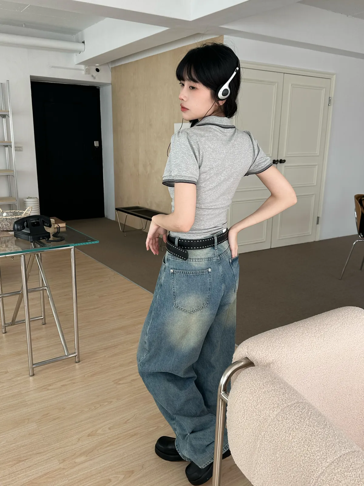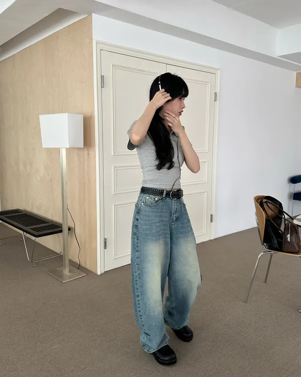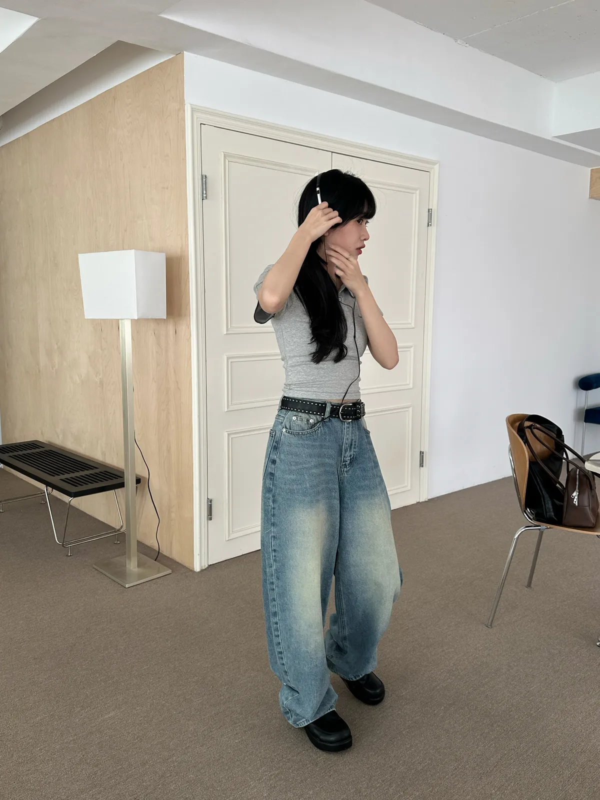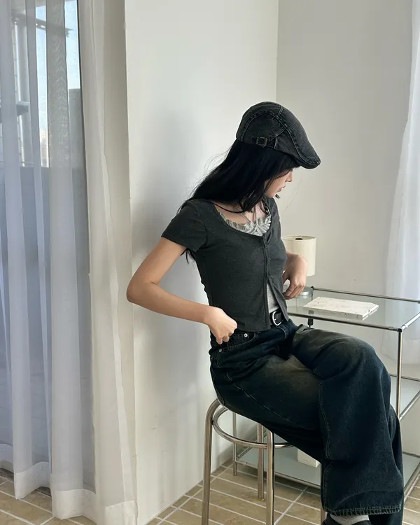 小編自留♡⃛ ̖́-設計釦牛仔寬褲(2col)