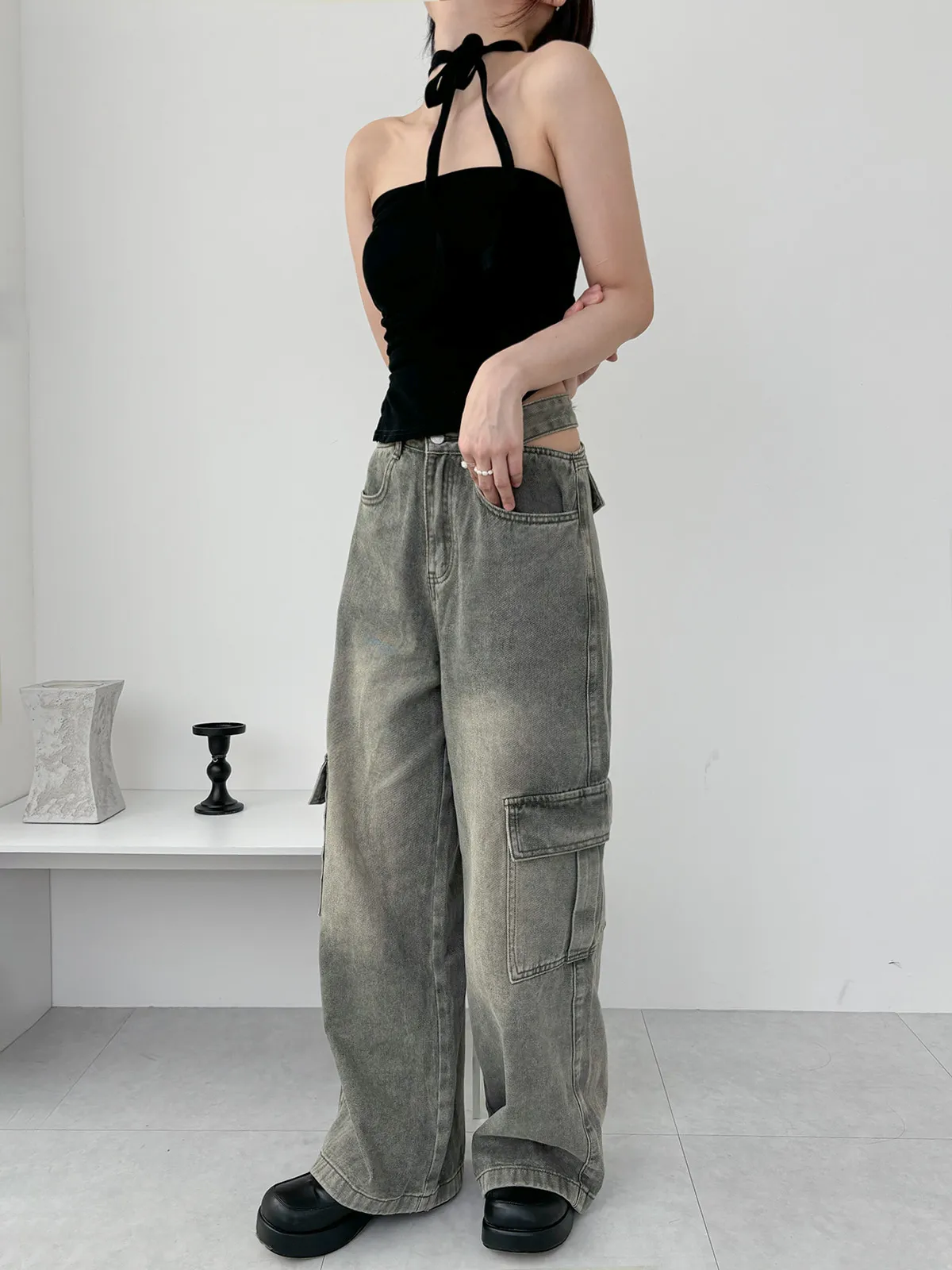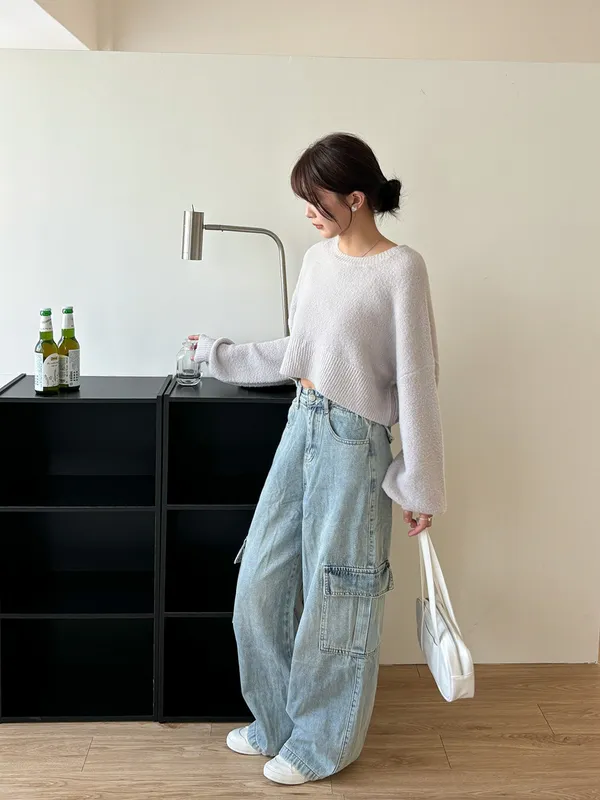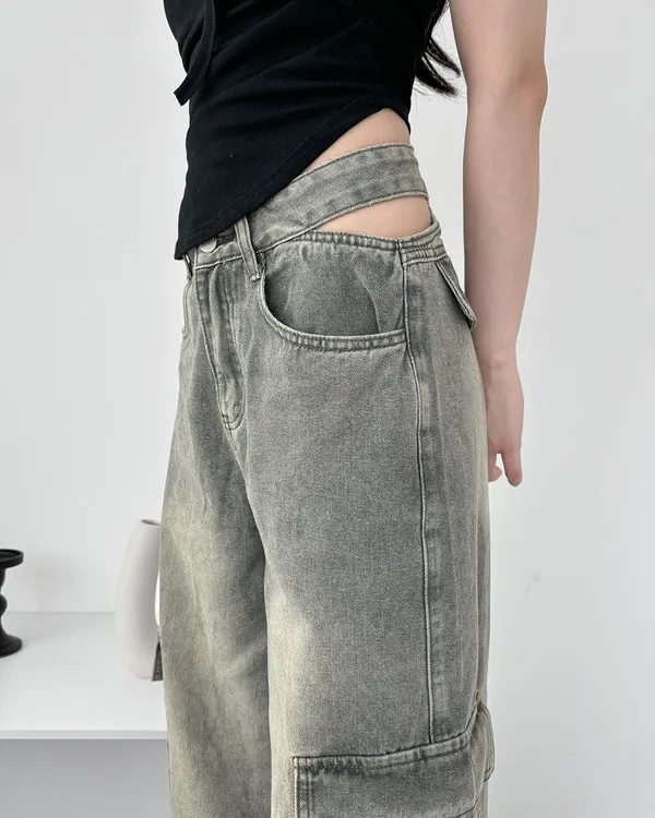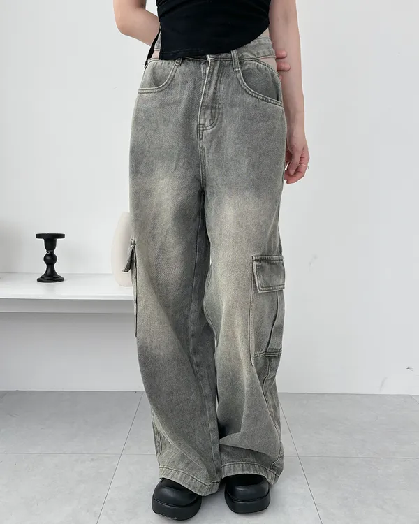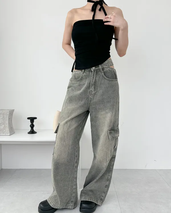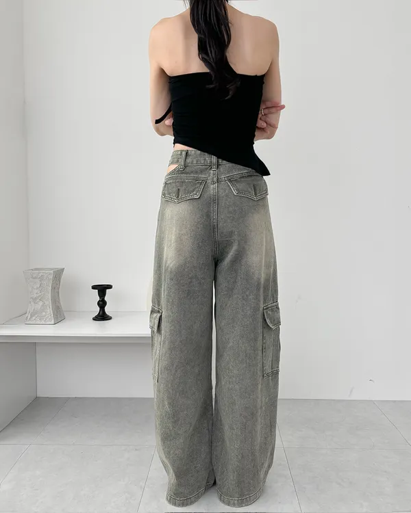 展露小心機!工裝牛仔寬褲(3col)