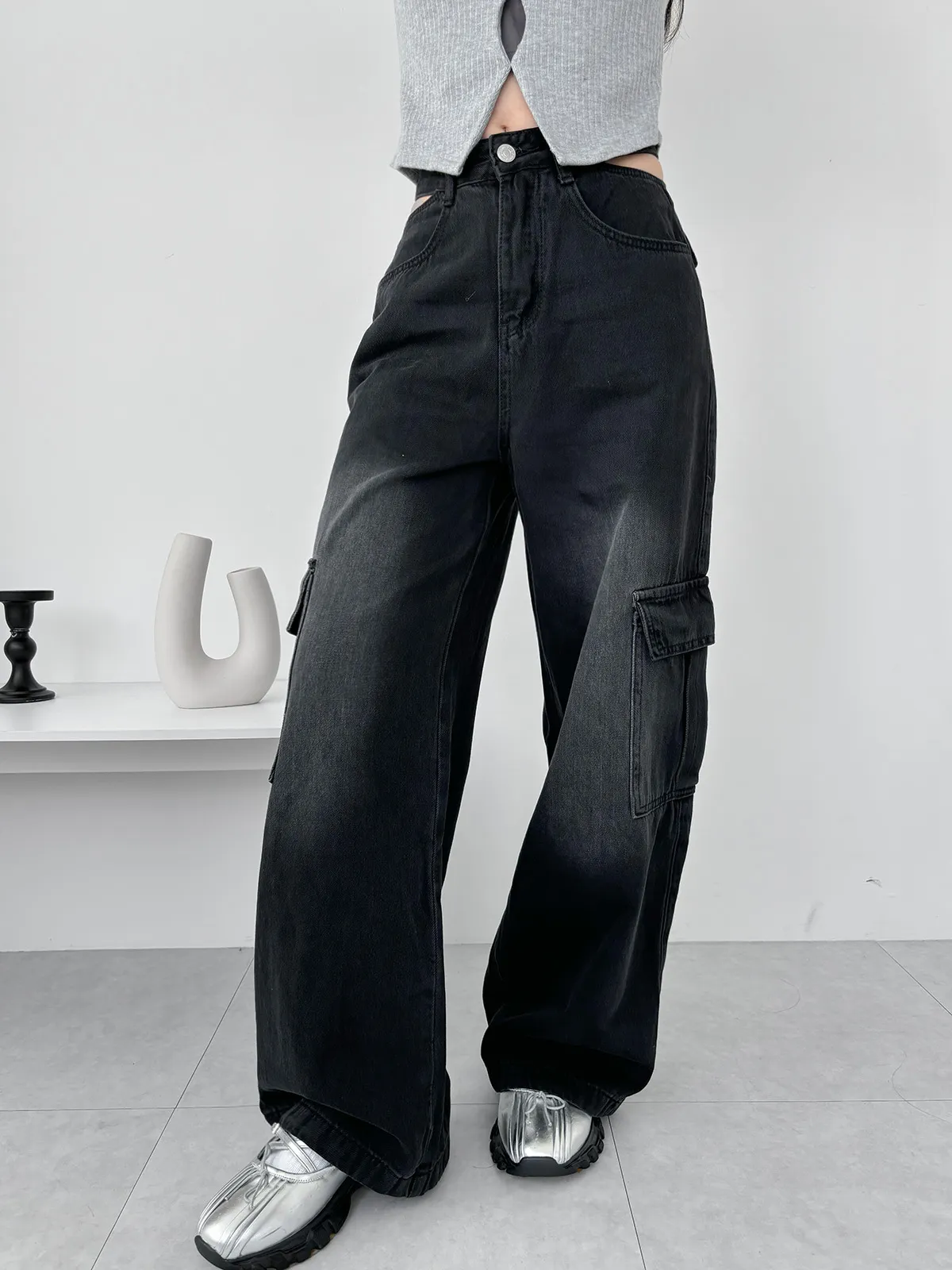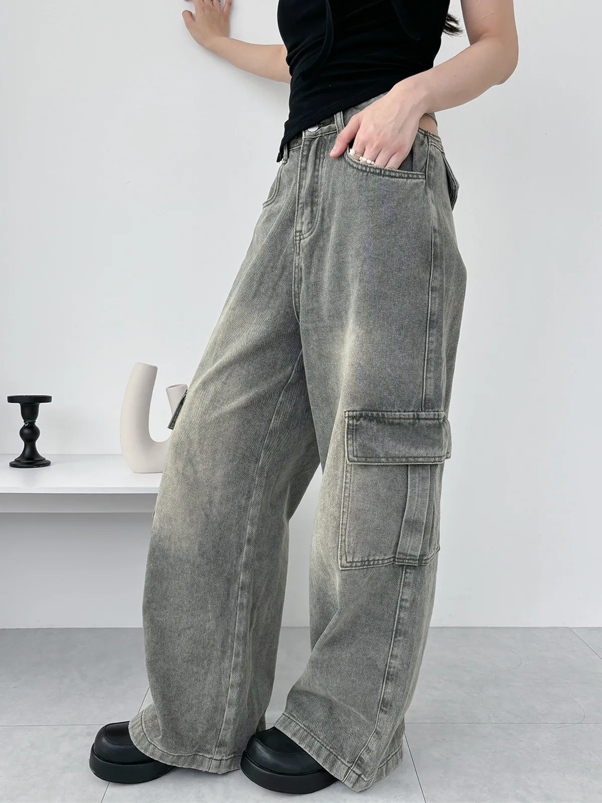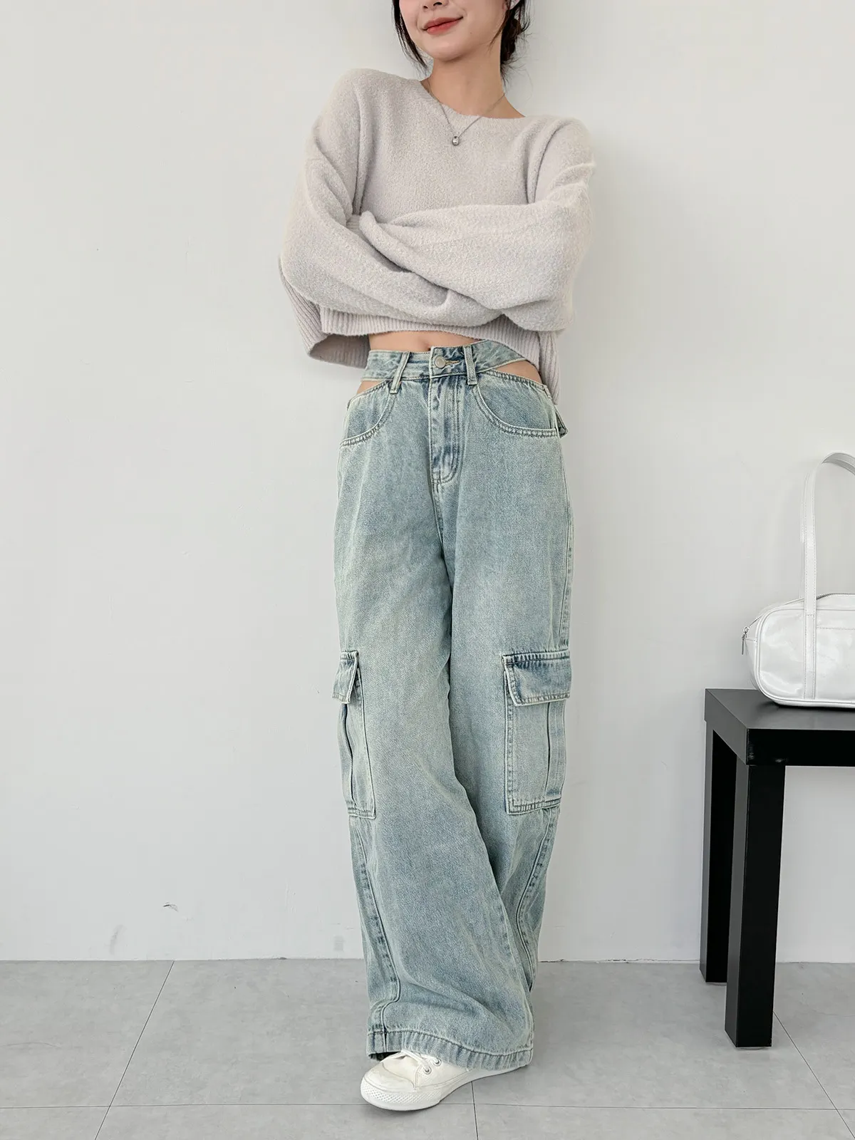 展露小心機!工裝牛仔寬褲(3col)