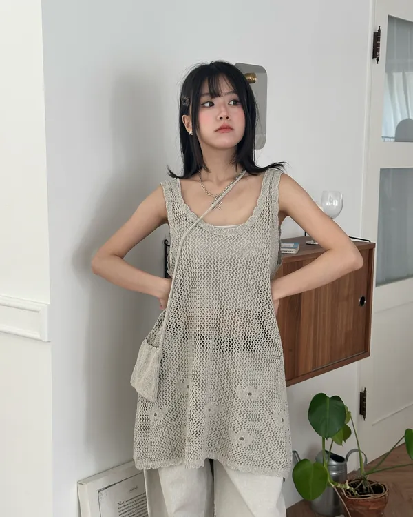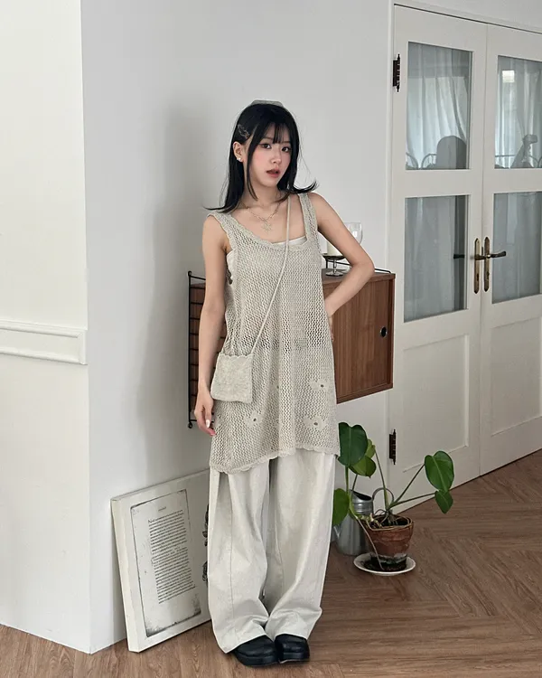 送編織小包/ On my way 花邊針織背心洋裝-2col