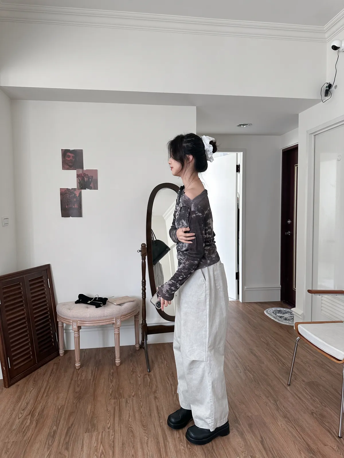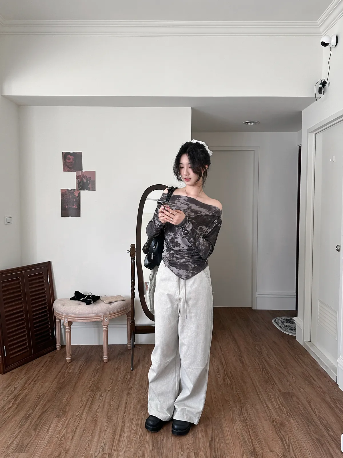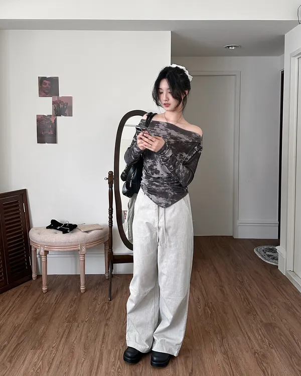韓國人的愛 鬆緊設計簡約寬褲-3col