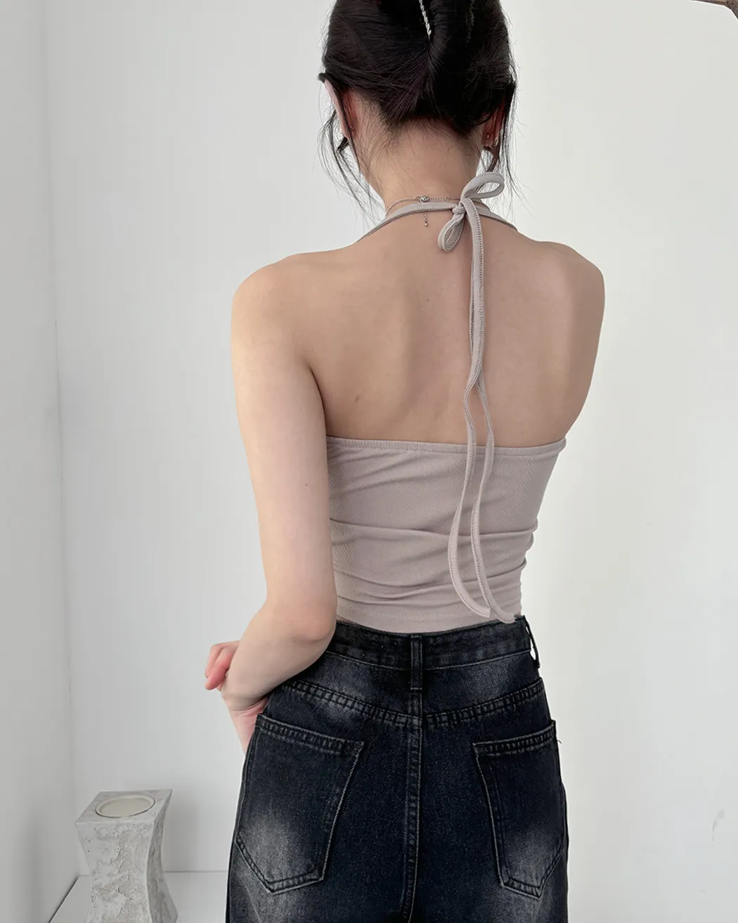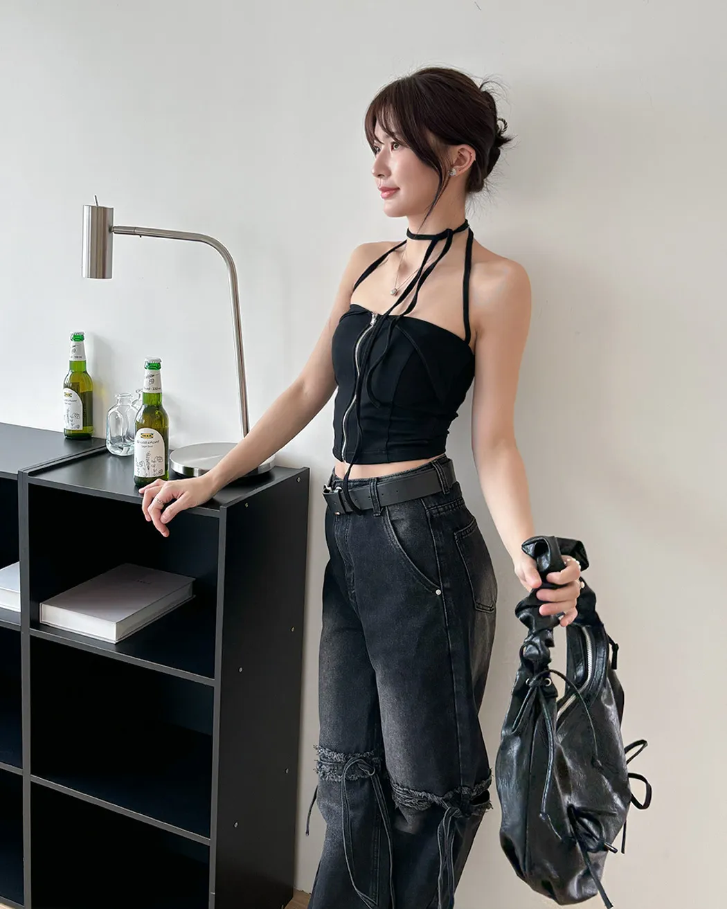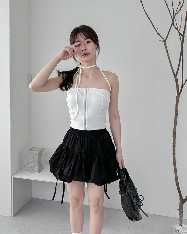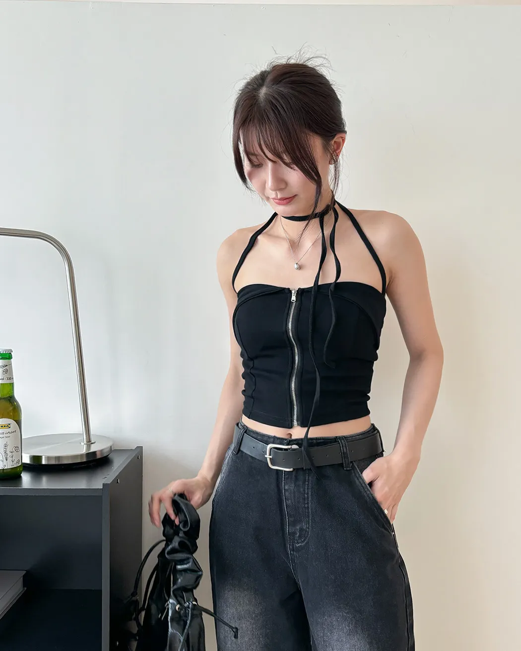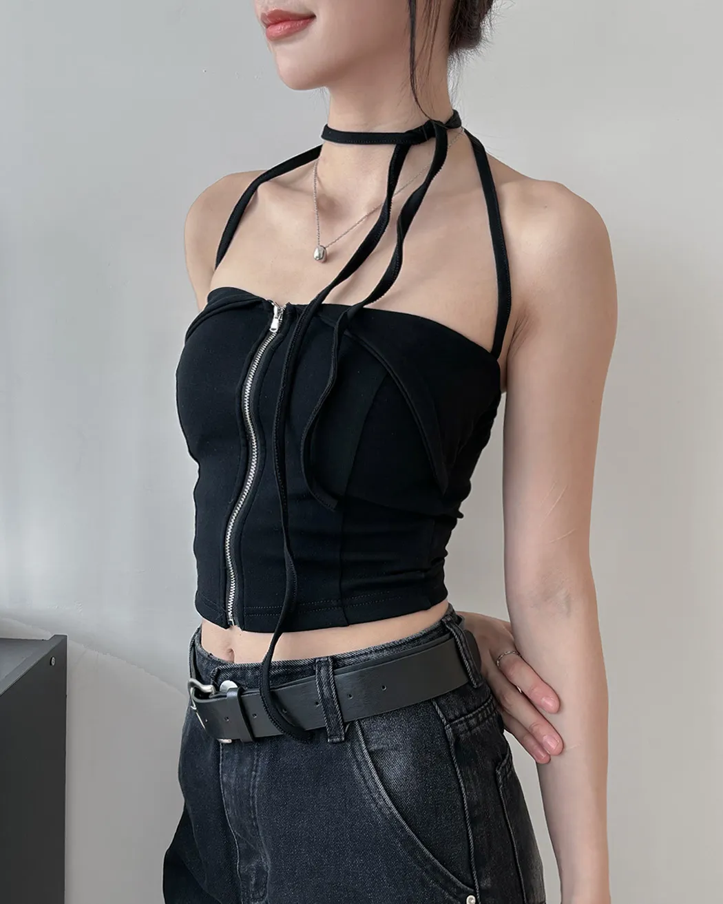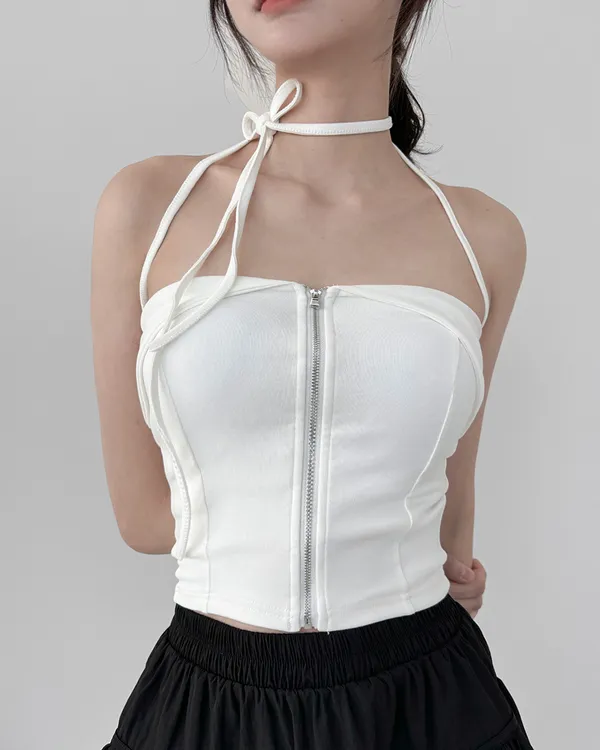 辣妹清單✓拉鍊繞脖翻領平口背心(4col)