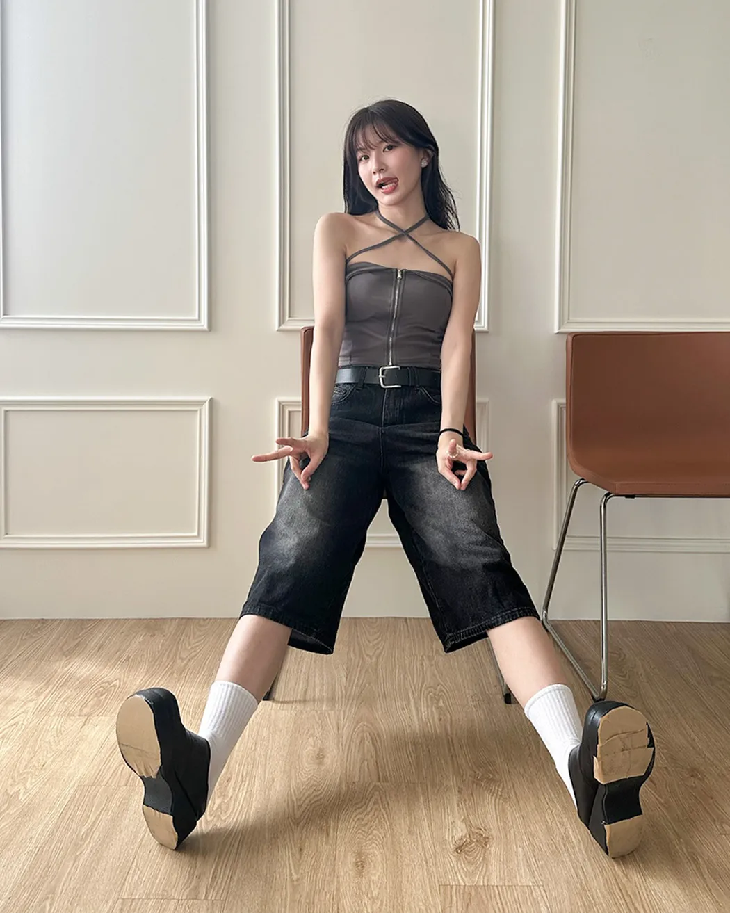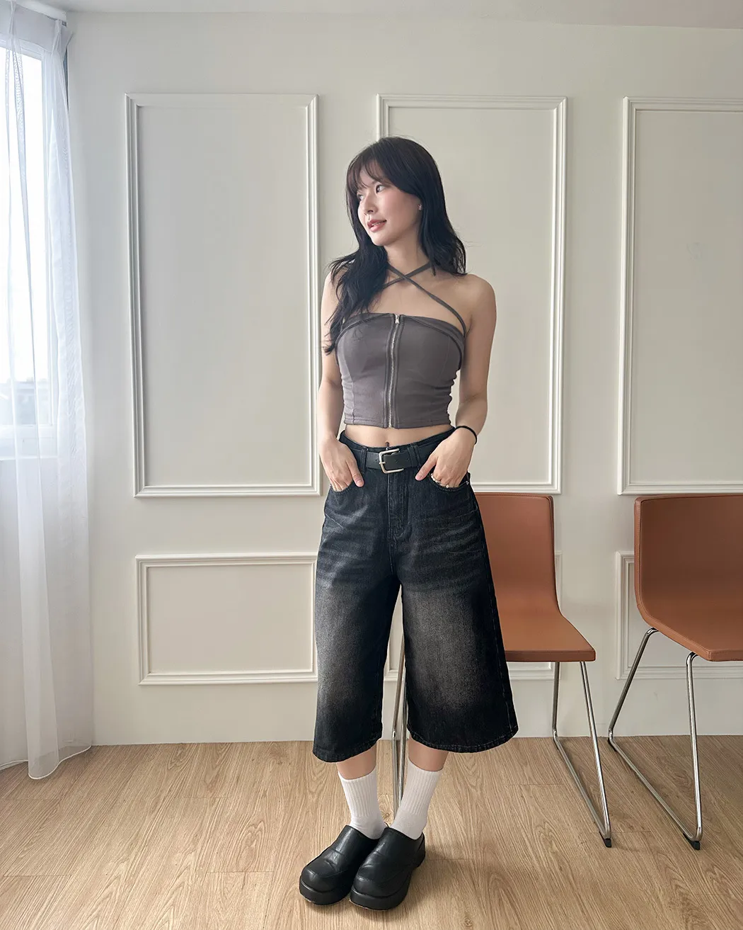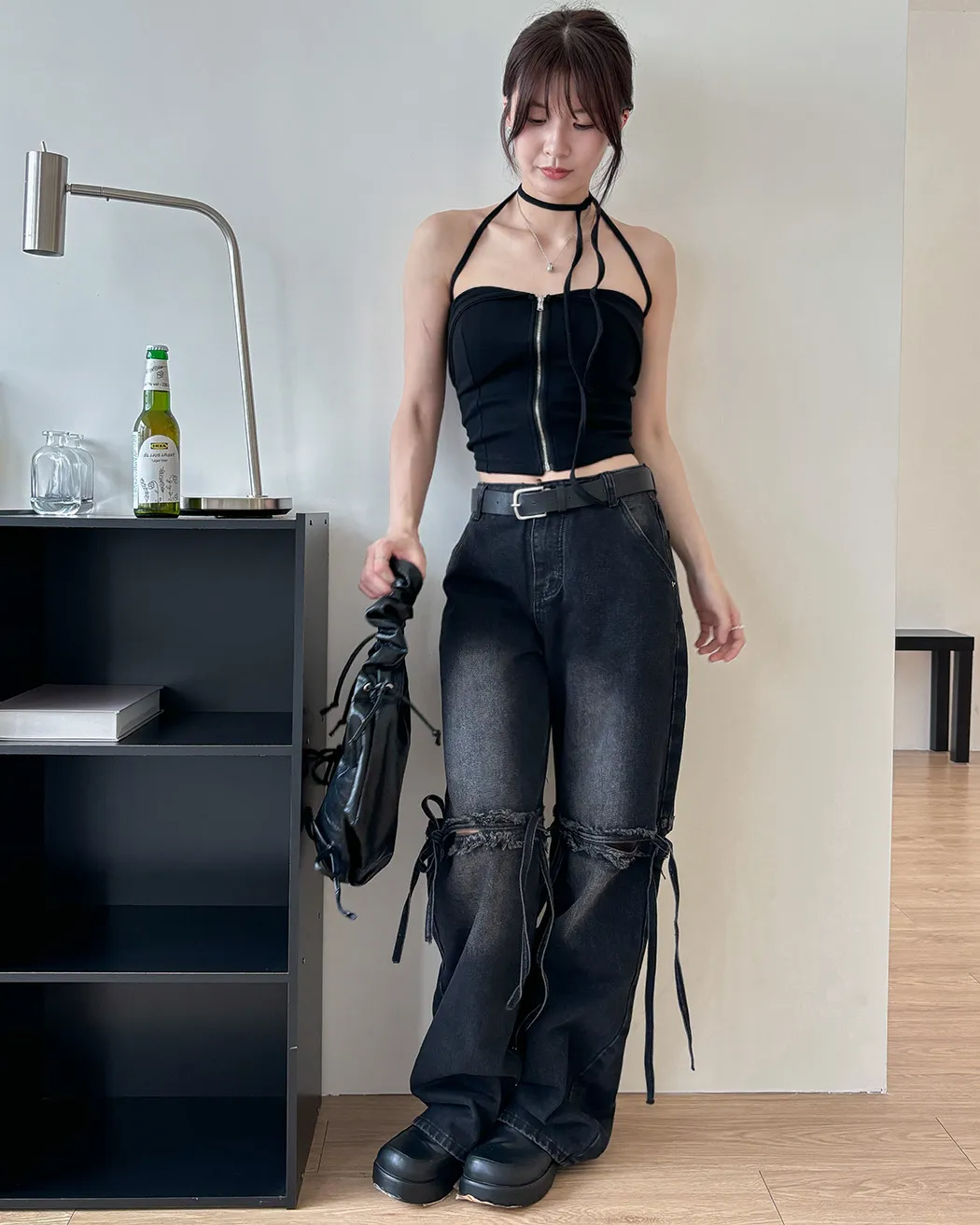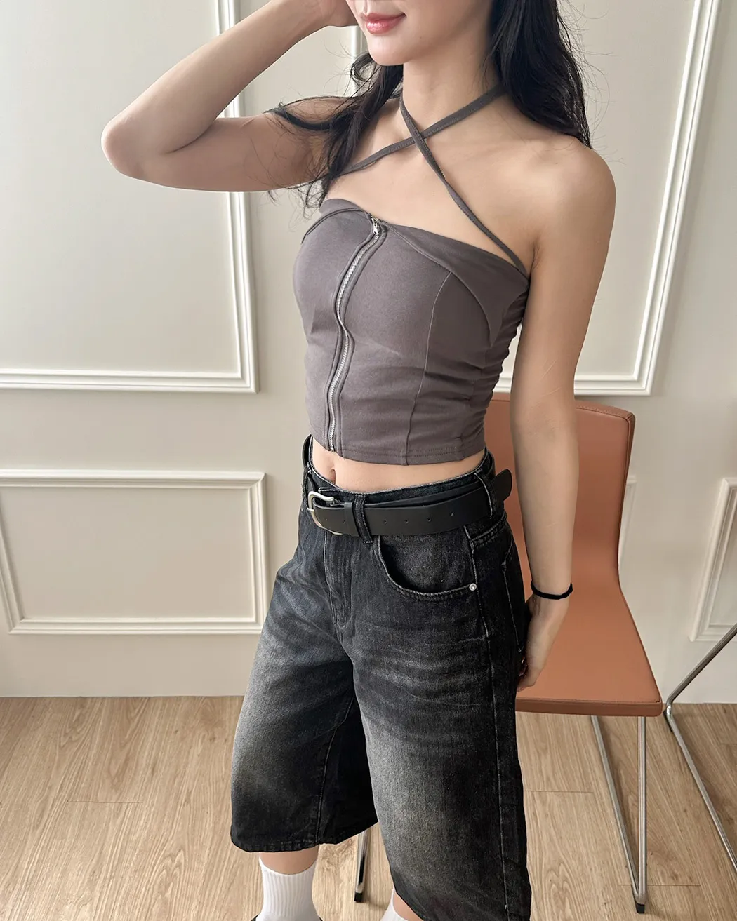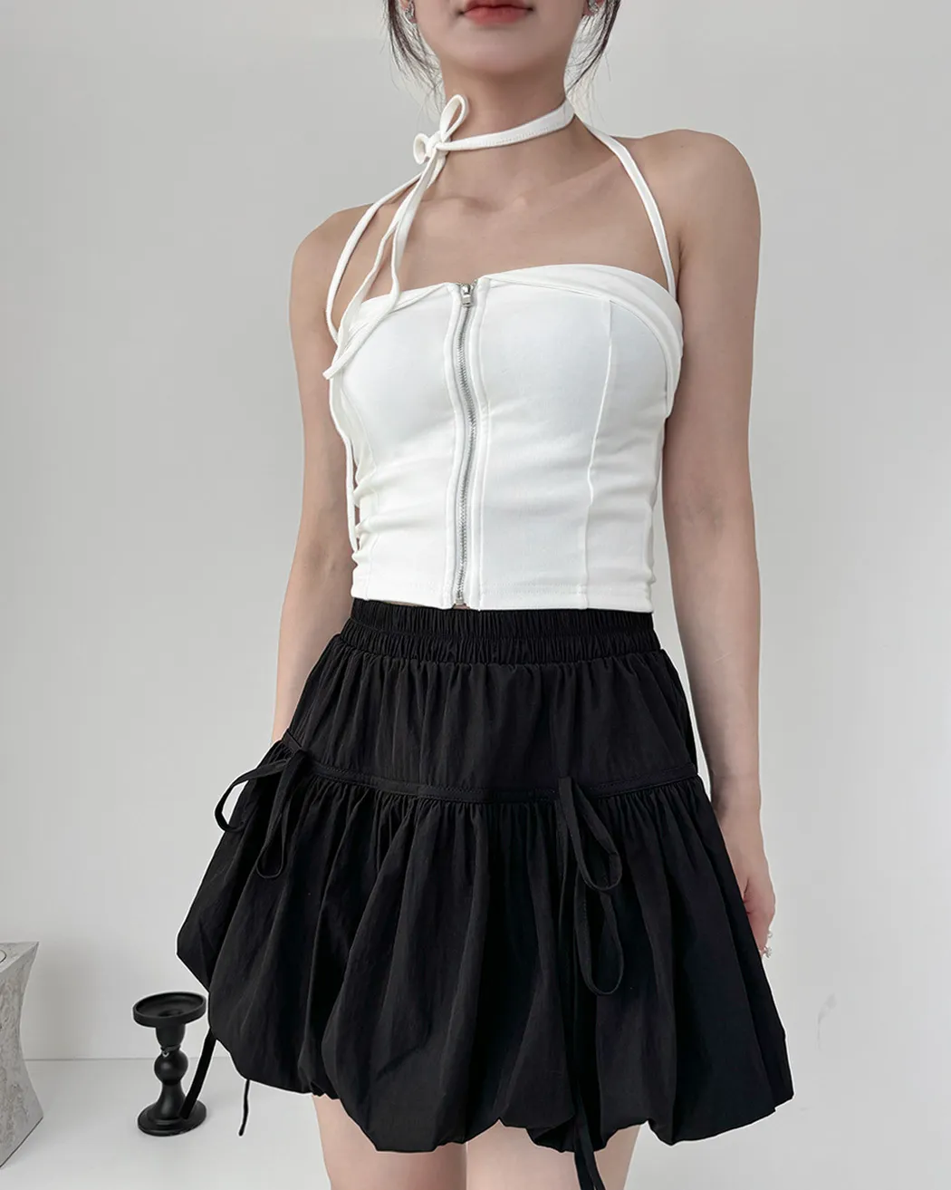 辣妹清單✓拉鍊繞脖翻領平口背心(4col)