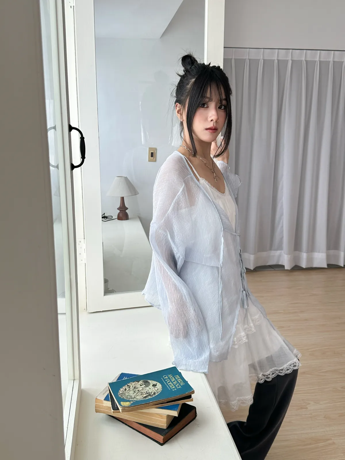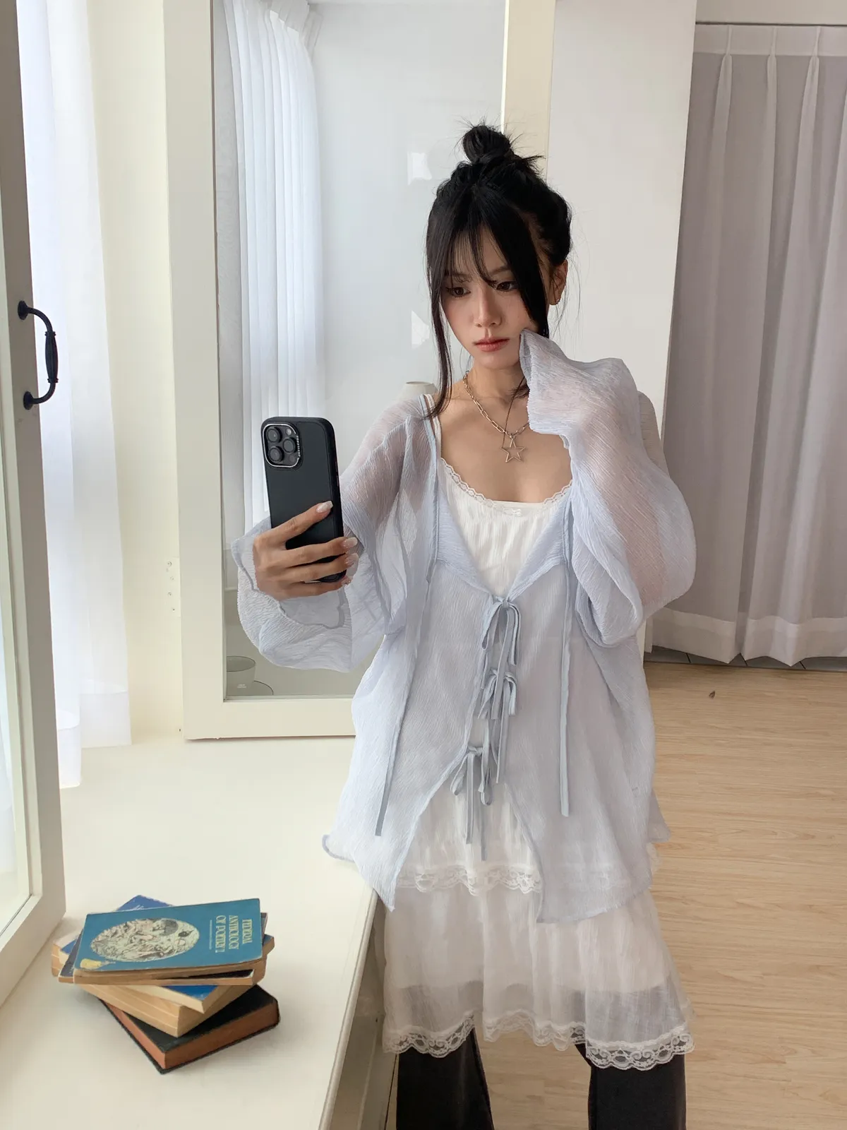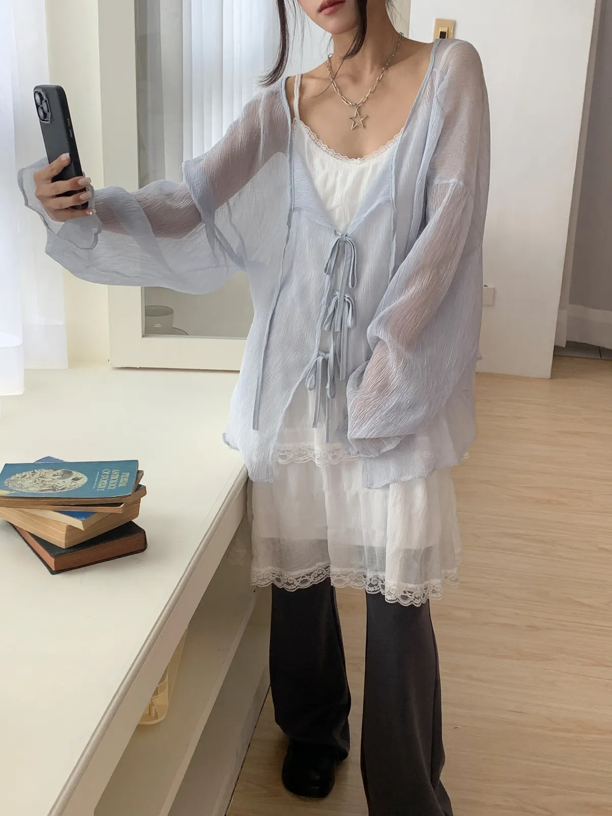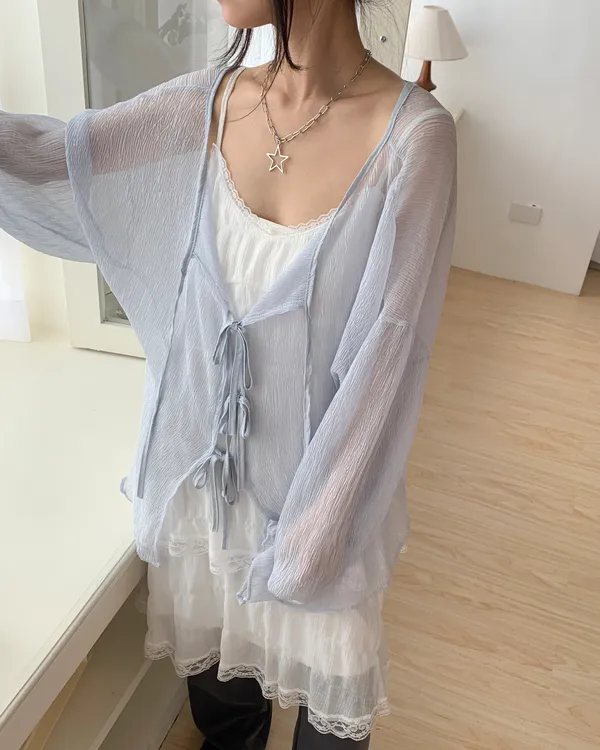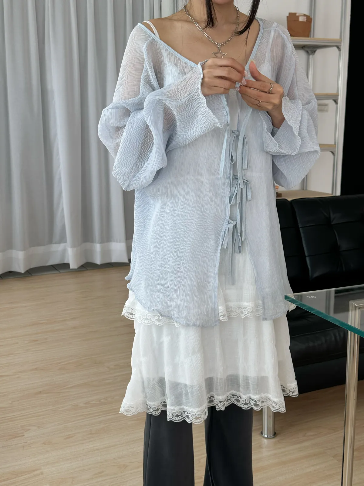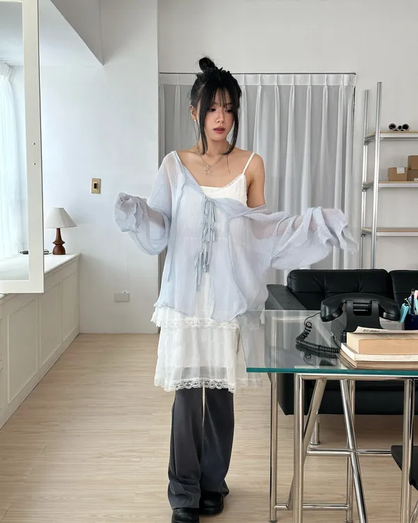 Model Size - F / 158cm, 42kg.- Tired ruffle- Mini dress- Lace-trimmed neckline