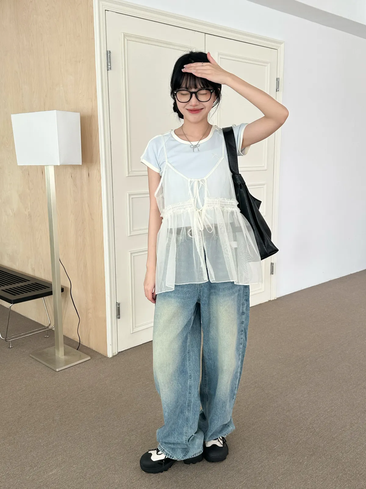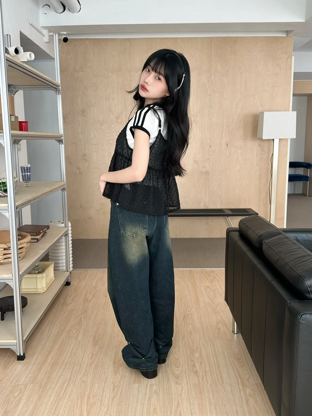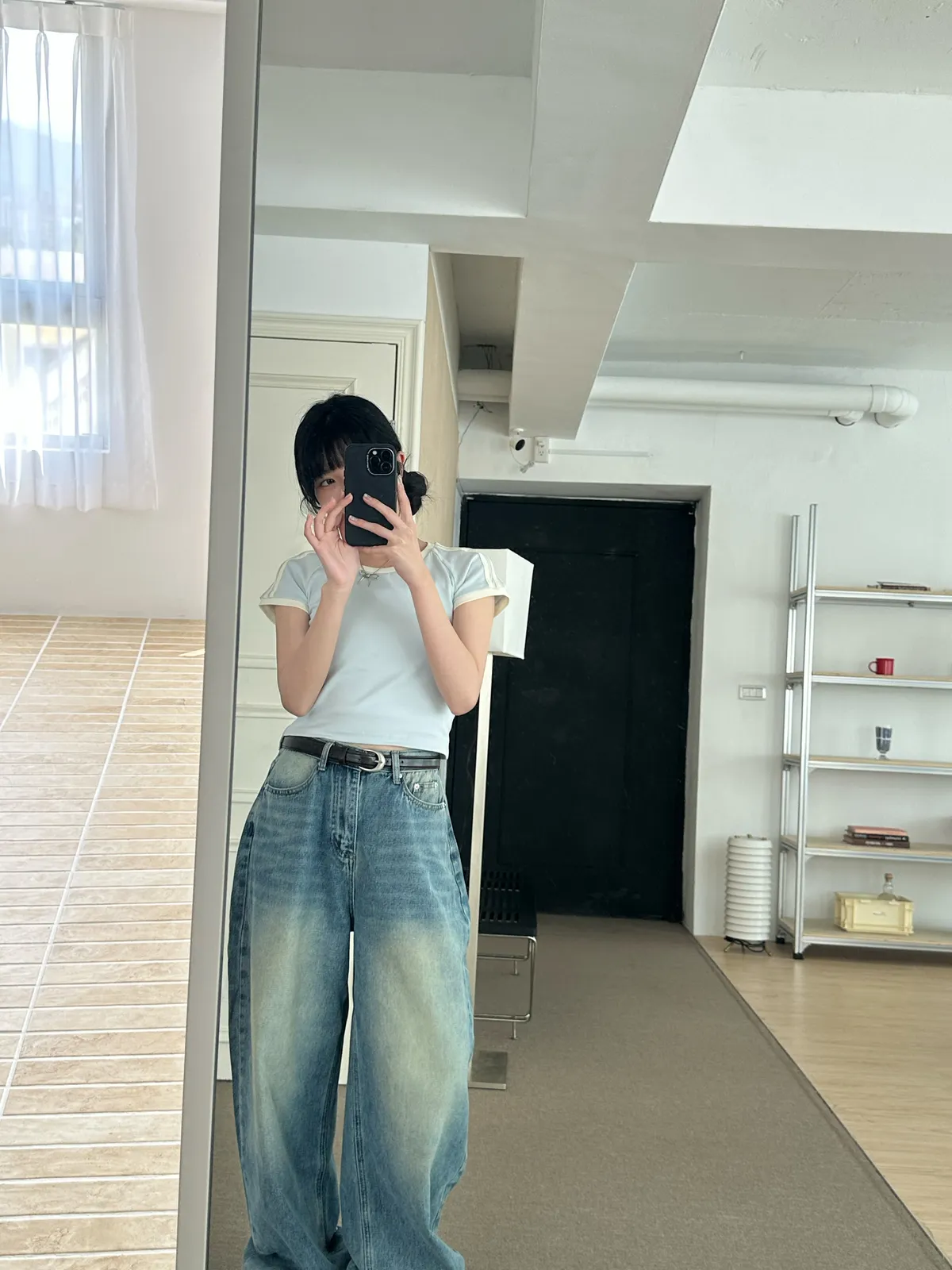 小編自留♡⃛ ̖́-設計釦牛仔寬褲(2col)