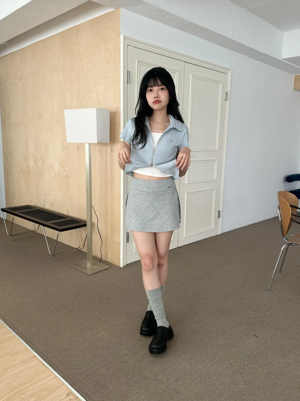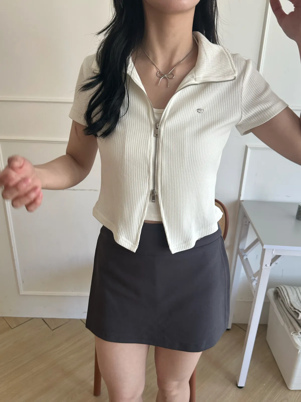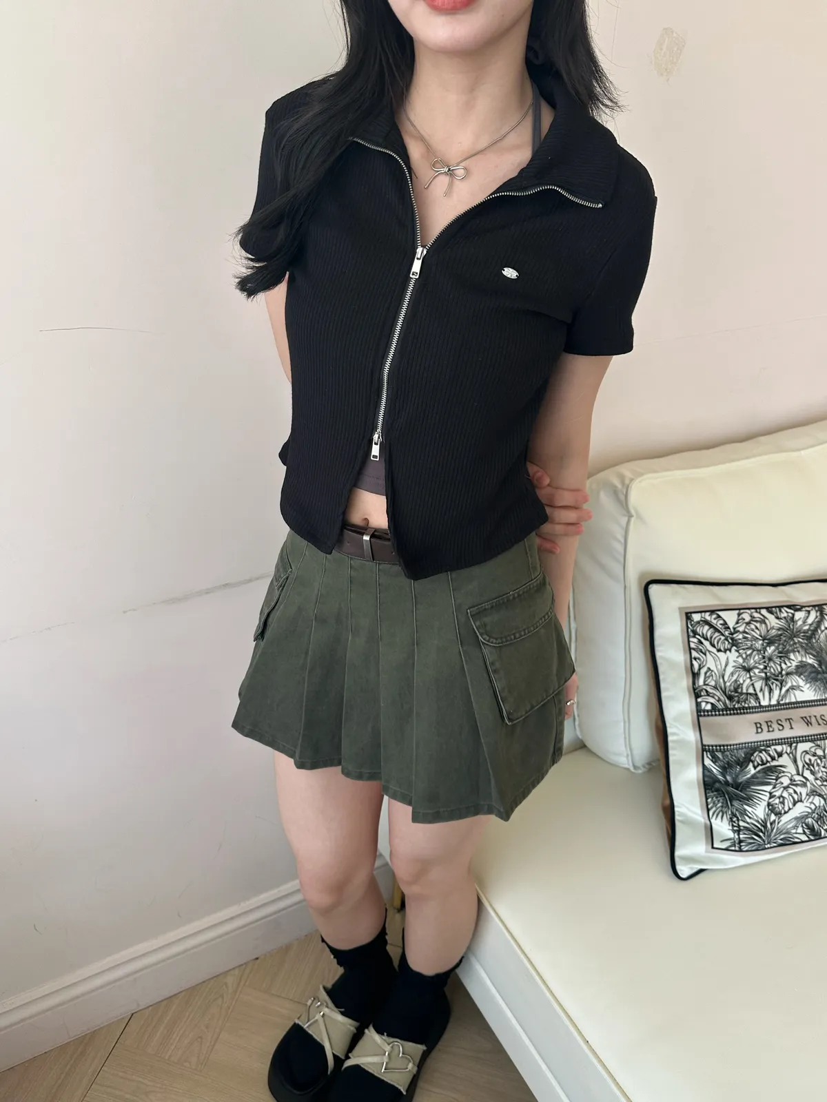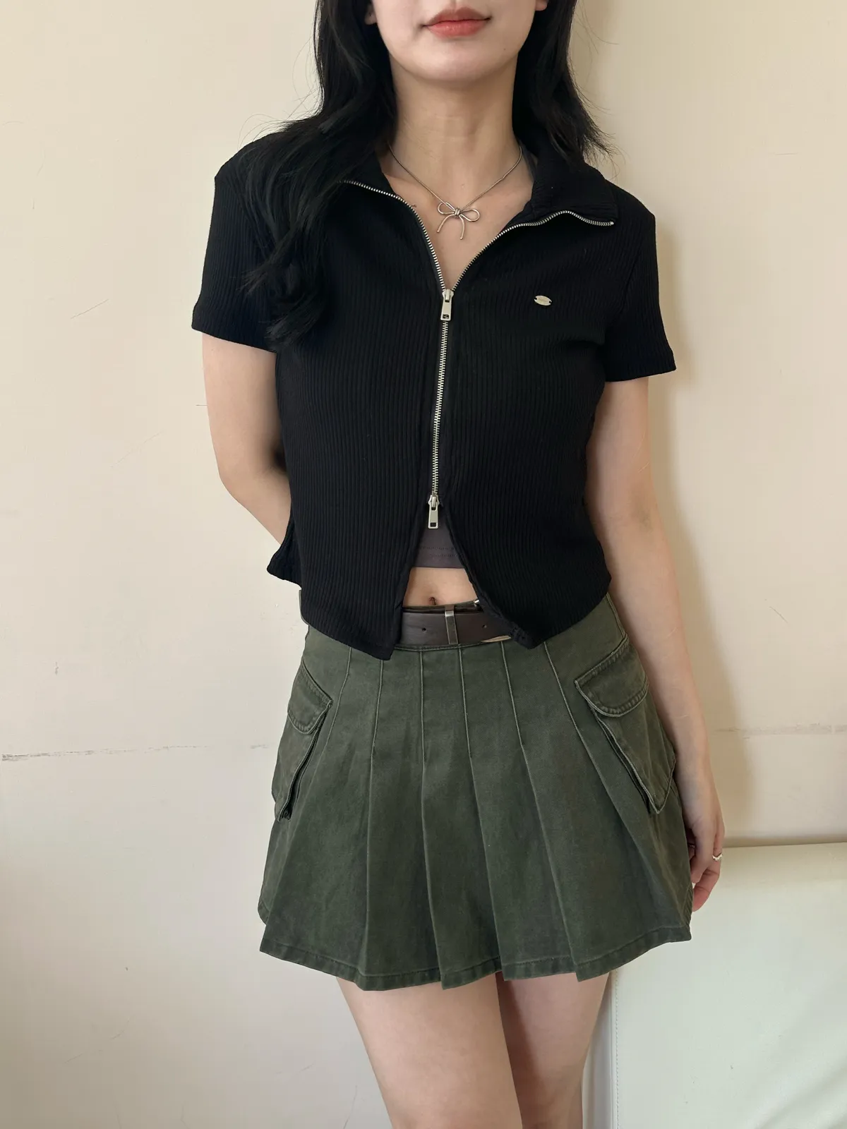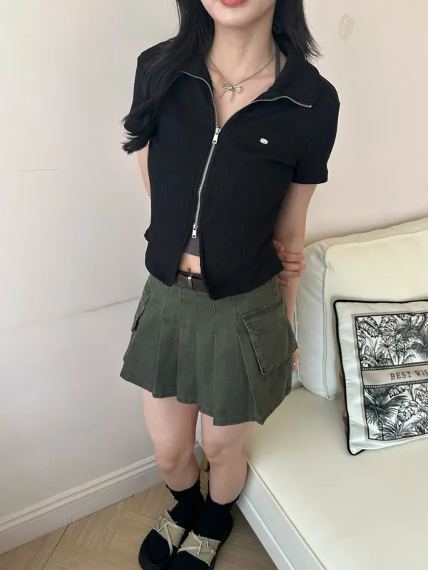 百褶工裝迷你裙(2col)