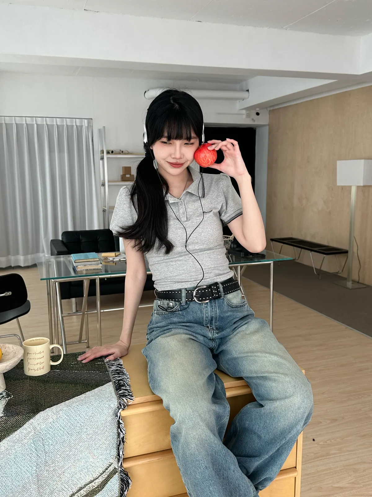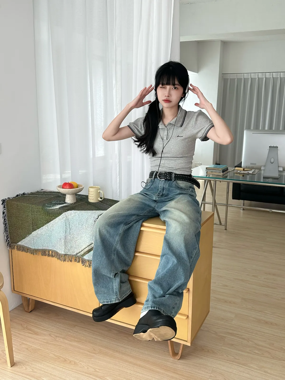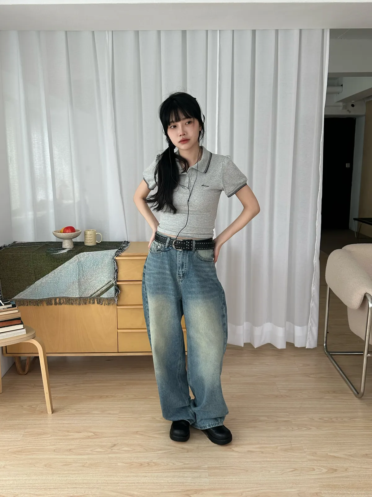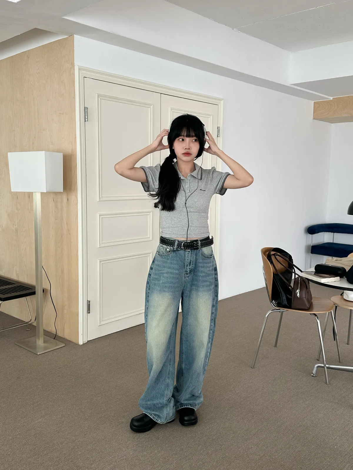 小編自留♡⃛ ̖́-設計釦牛仔寬褲(2col)