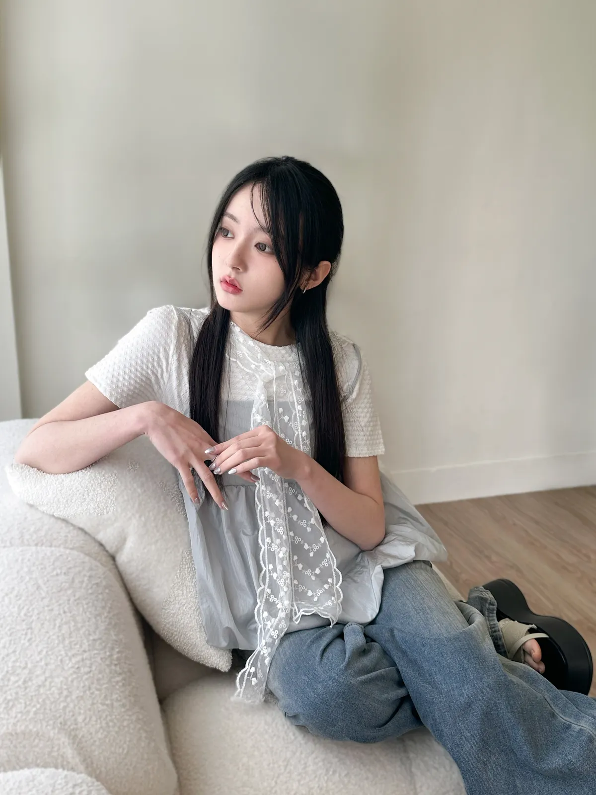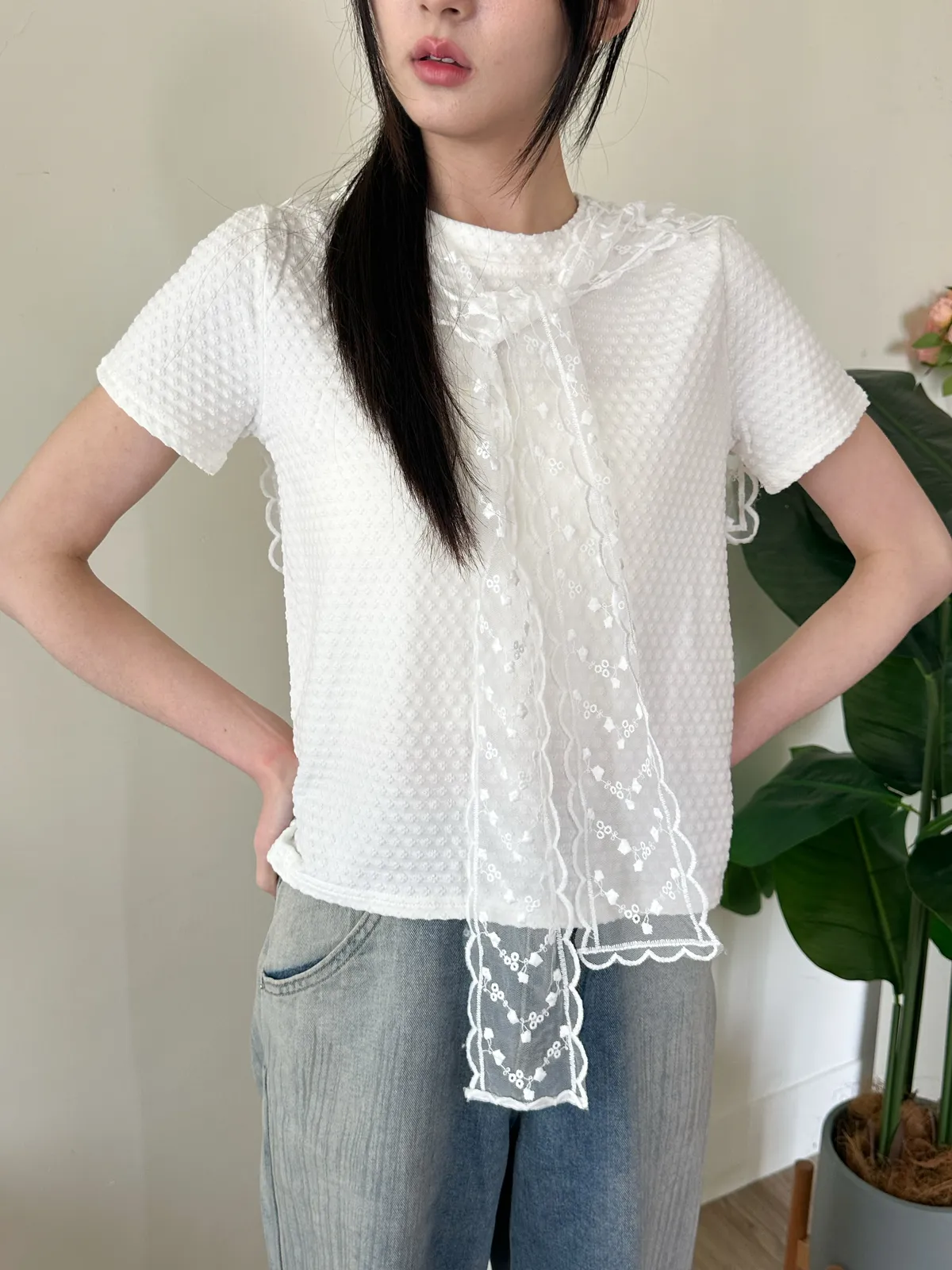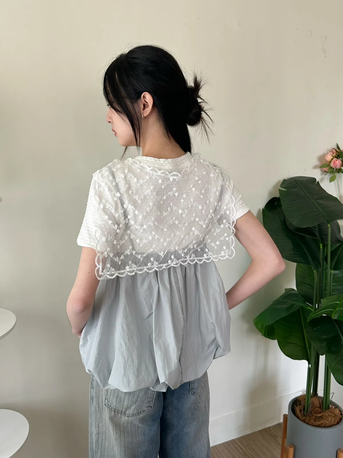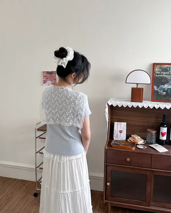 蕾絲披肩&氣質花花上衣-3ol