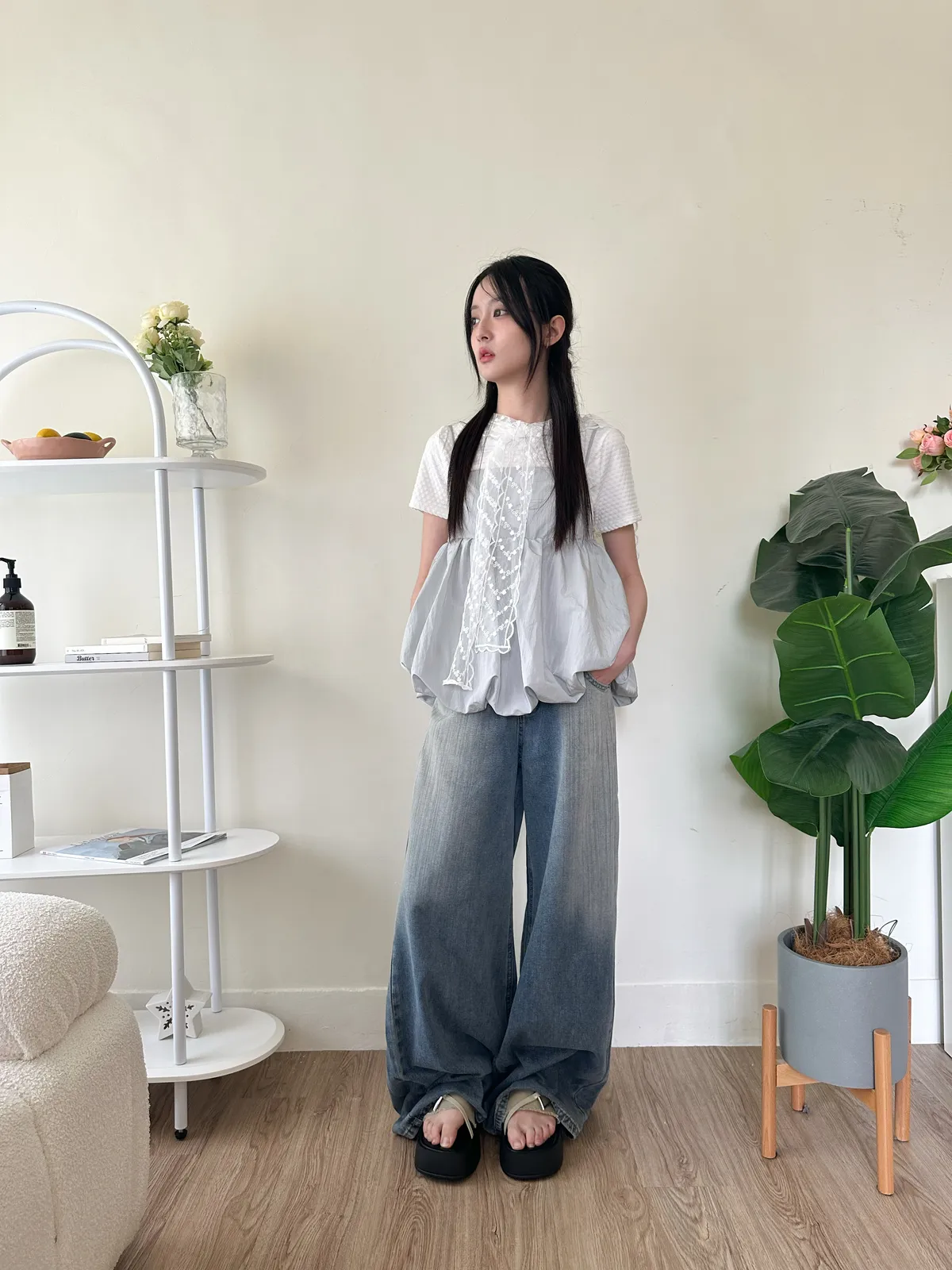 高個姊妹必帶刷色寬褲-2col