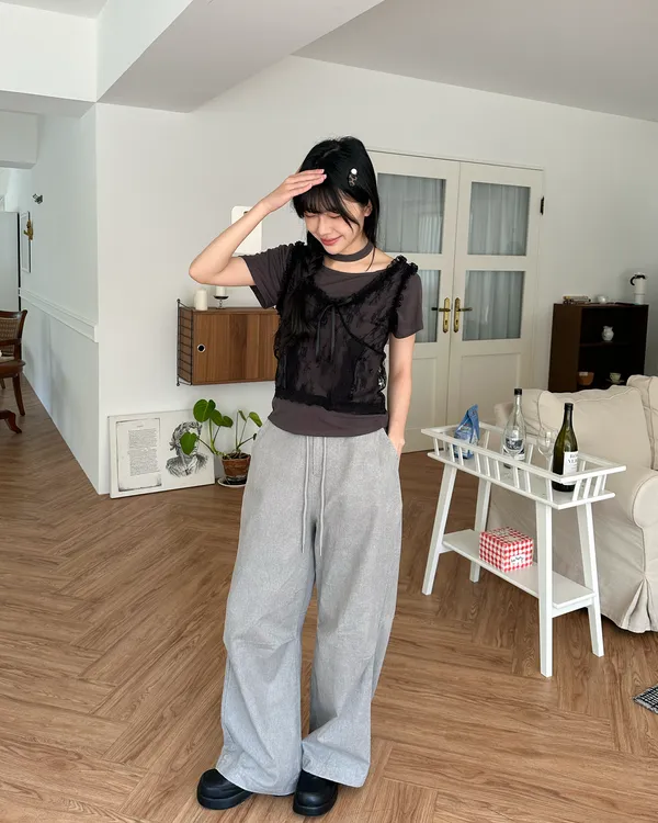 韓國人的愛 鬆緊設計簡約寬褲-3col