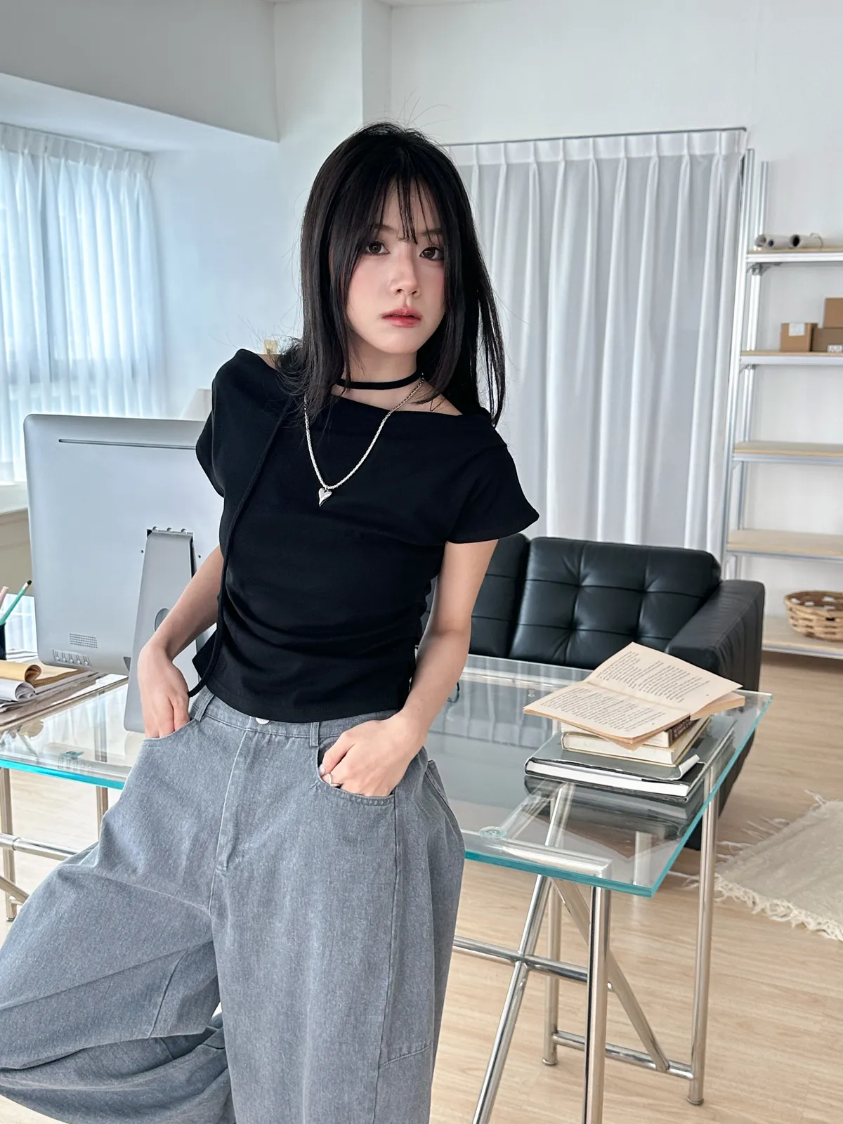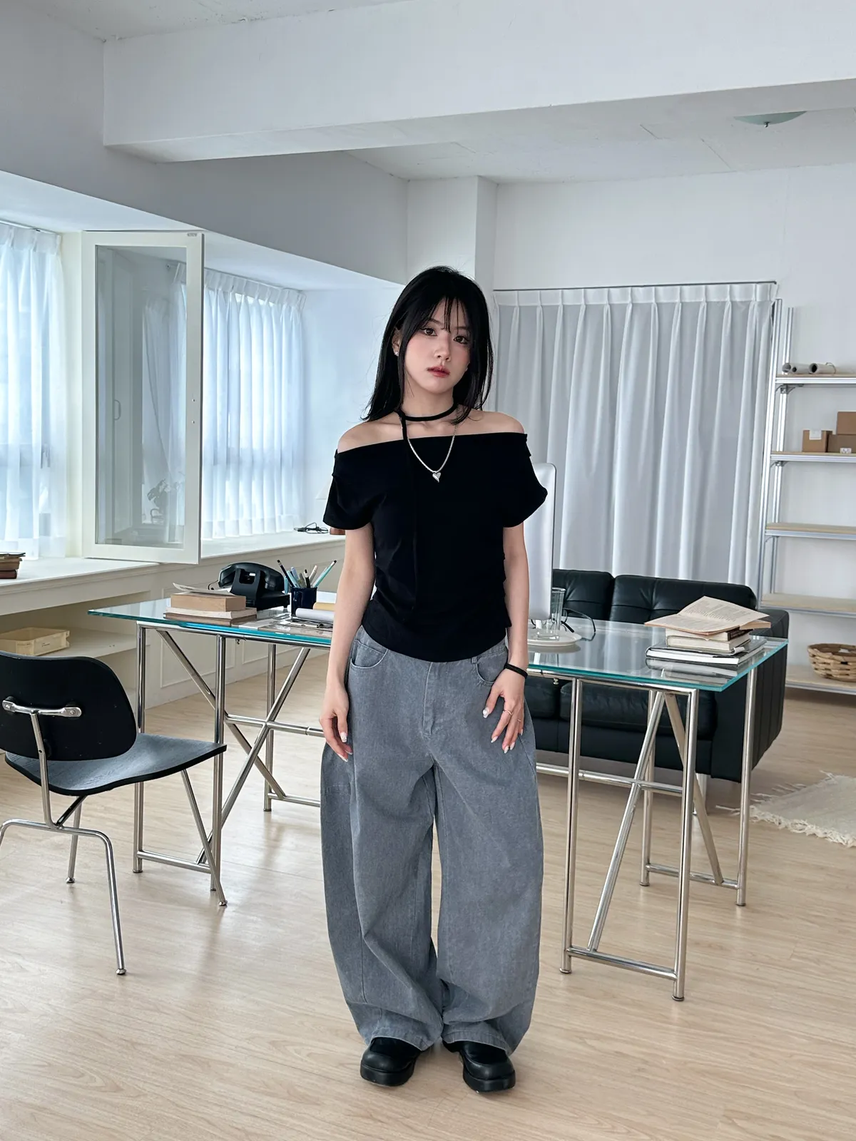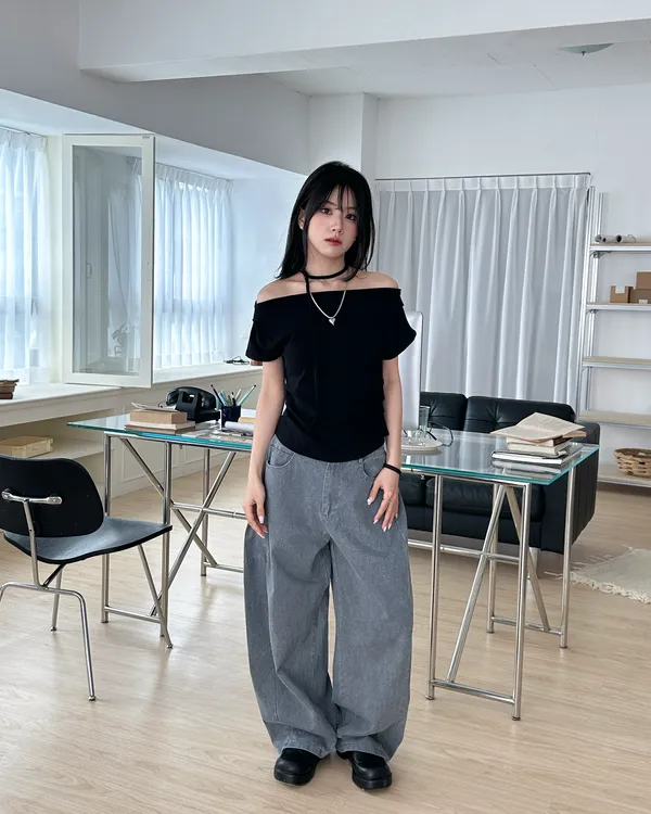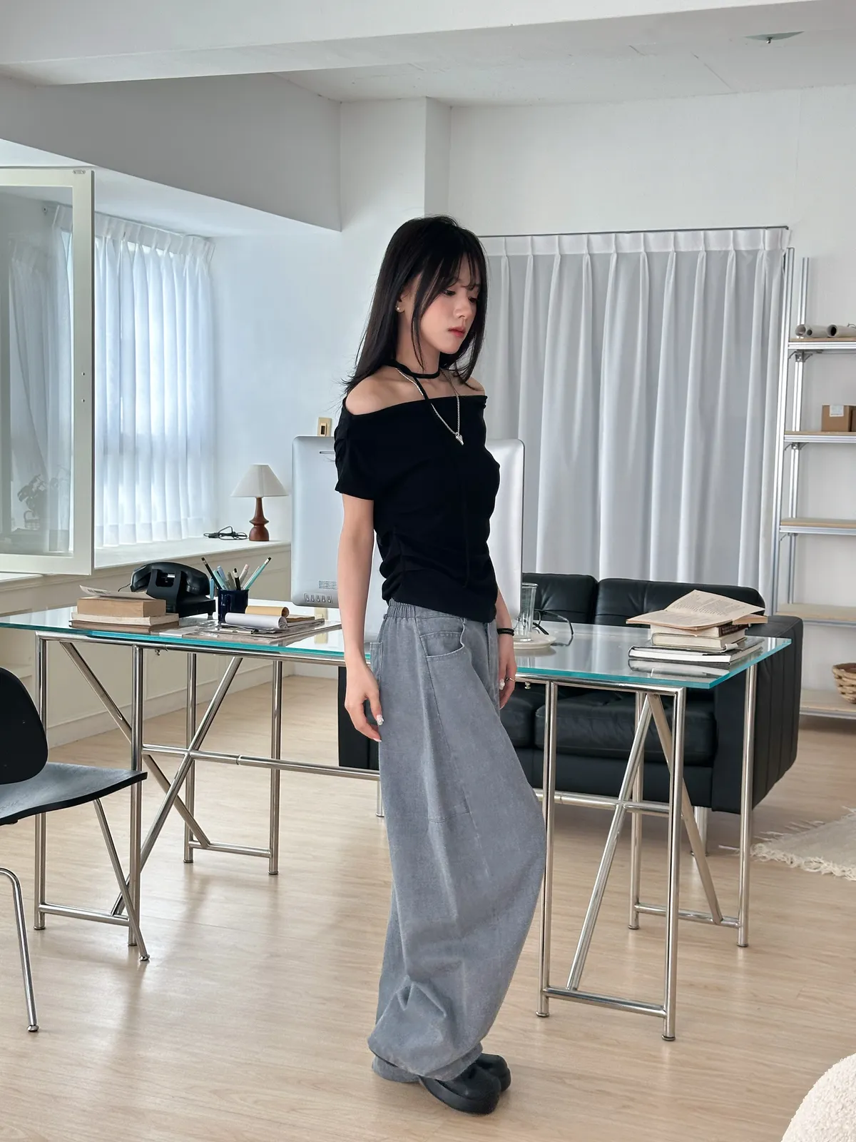 韓國人的愛 鬆緊設計簡約寬褲-3col