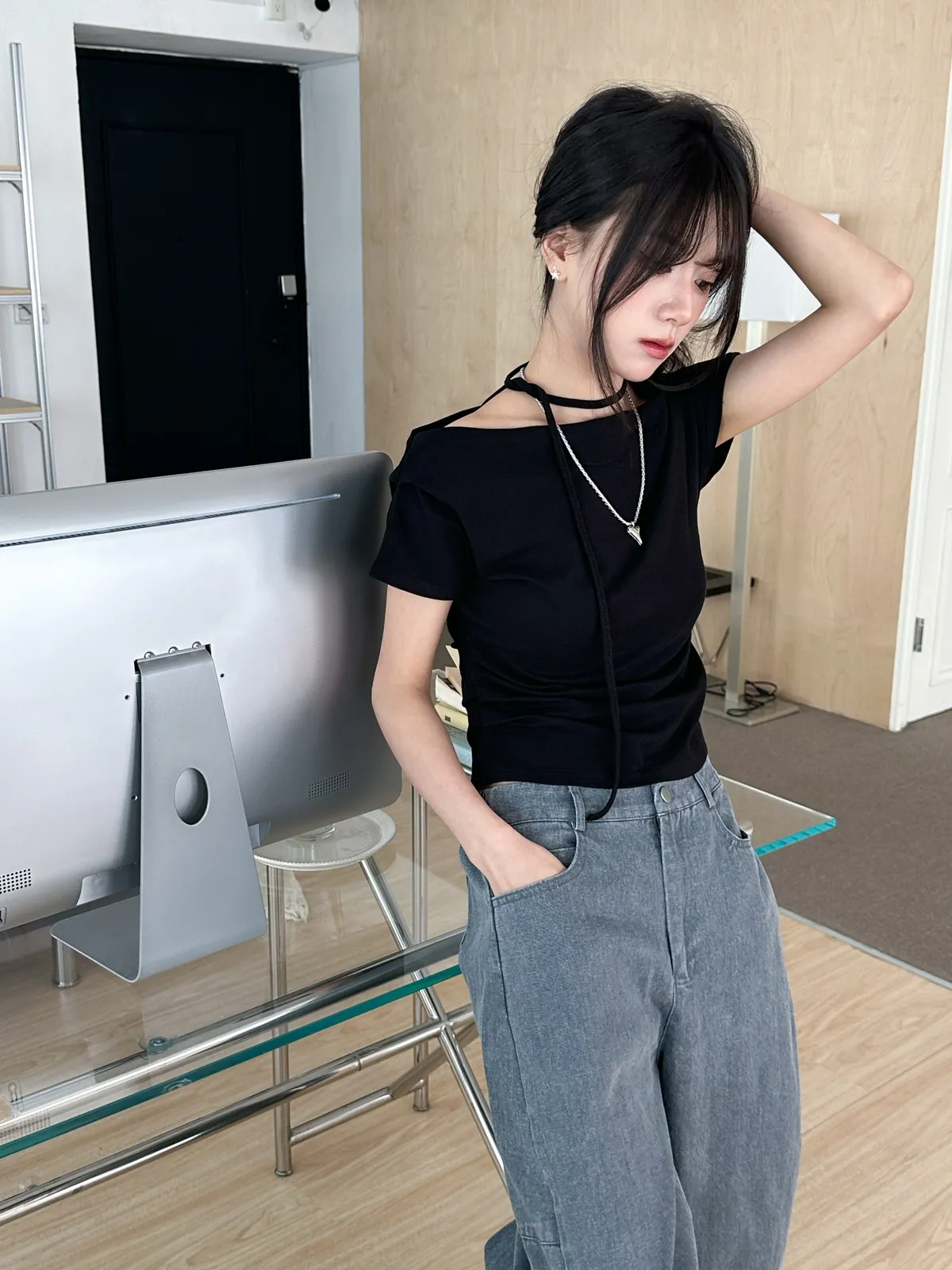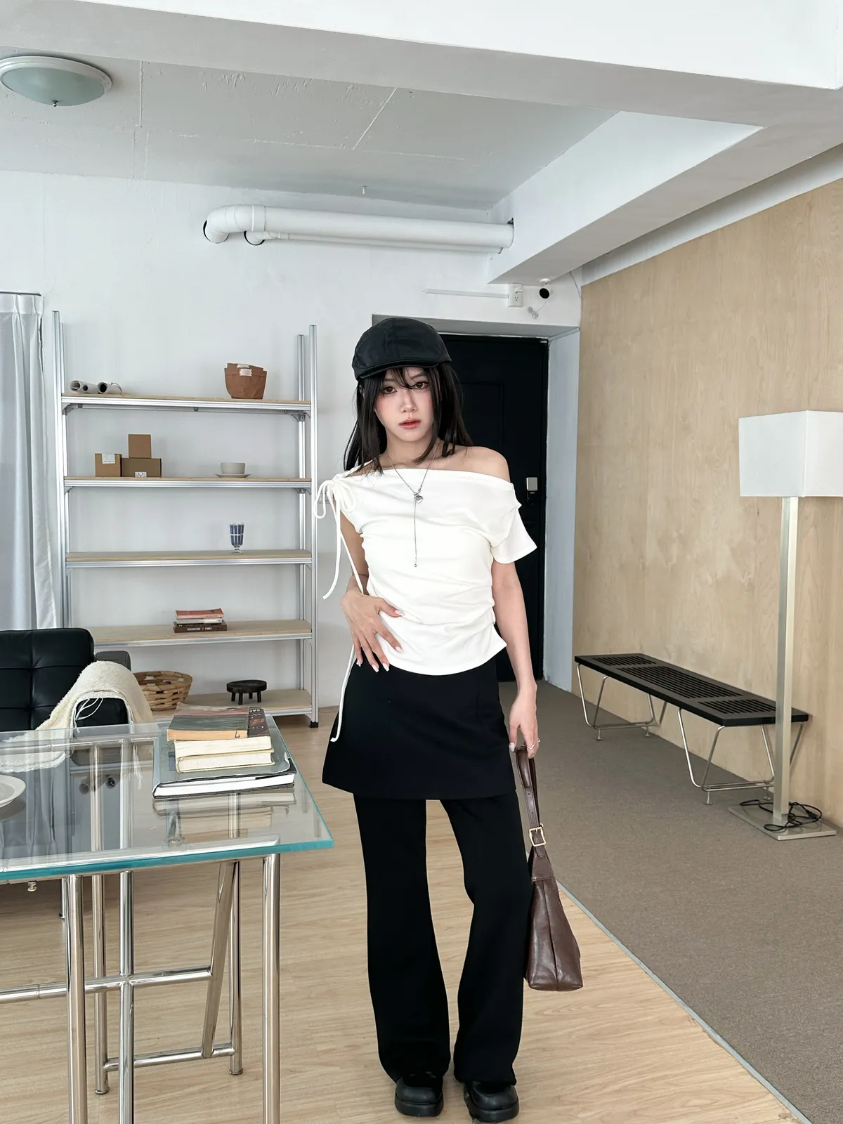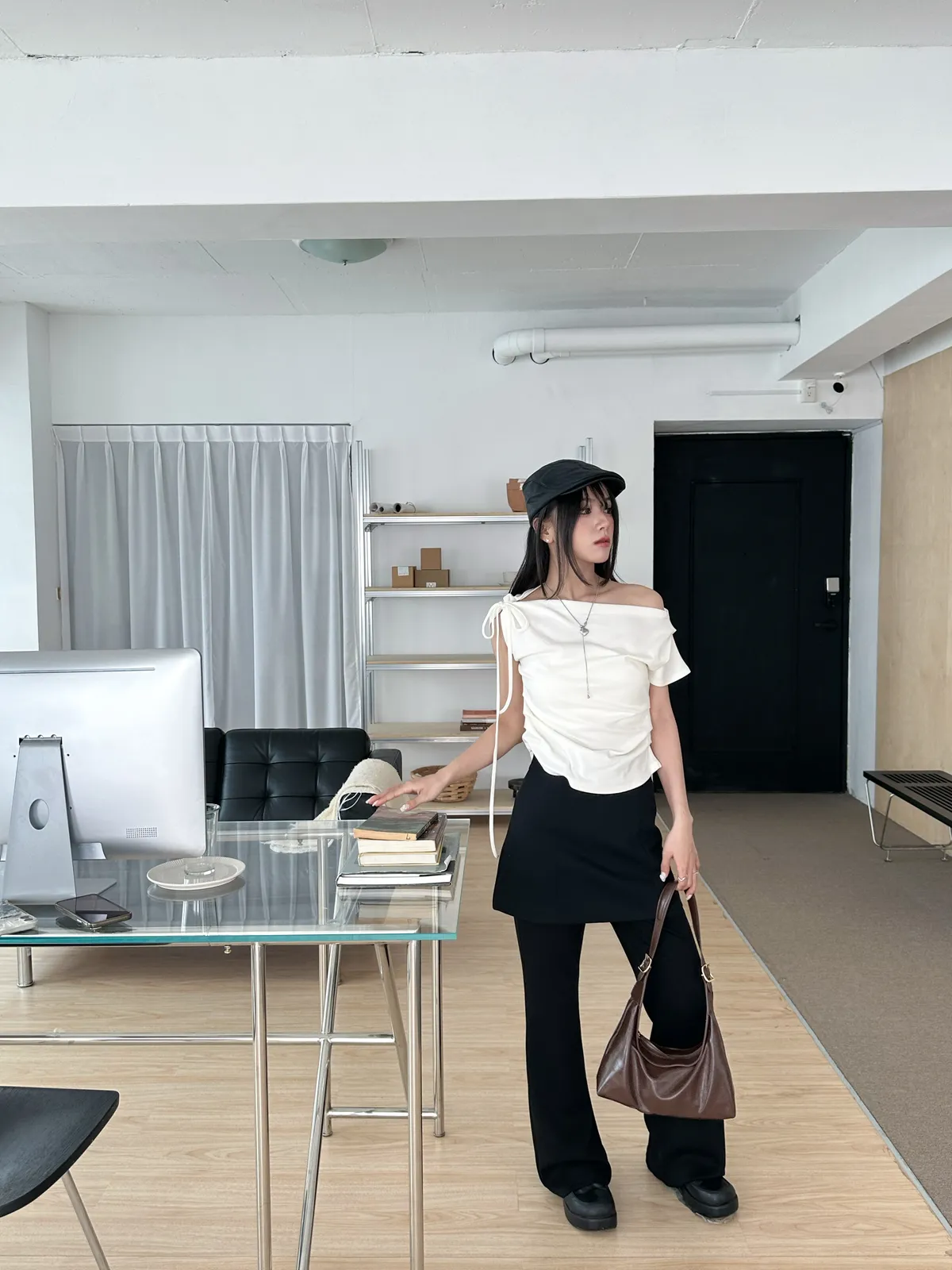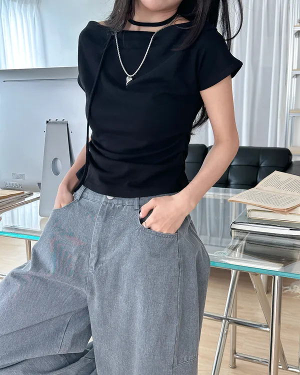 (附綁帶)多種穿法 質感收腰上衣-3col