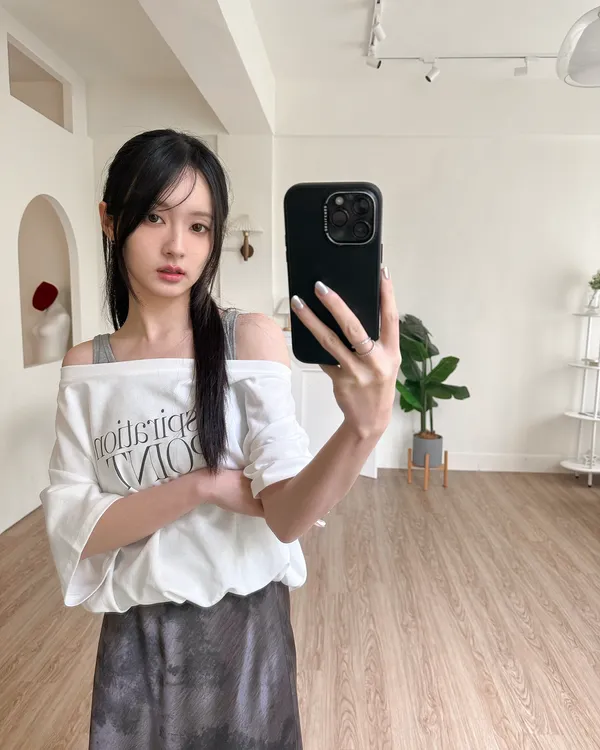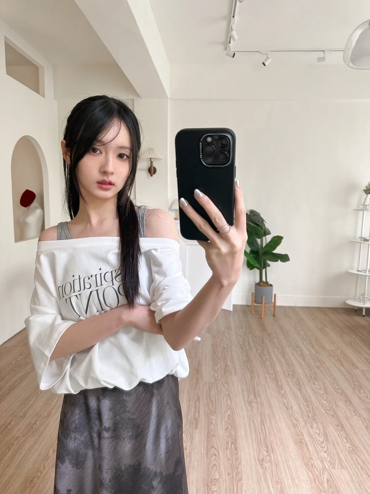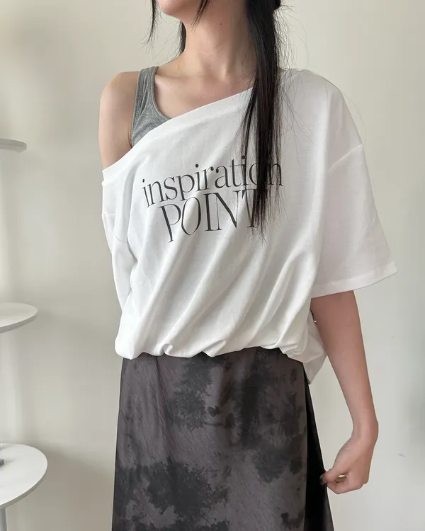 韓國大勢 背心+斜肩Tee(假兩件)-1col
