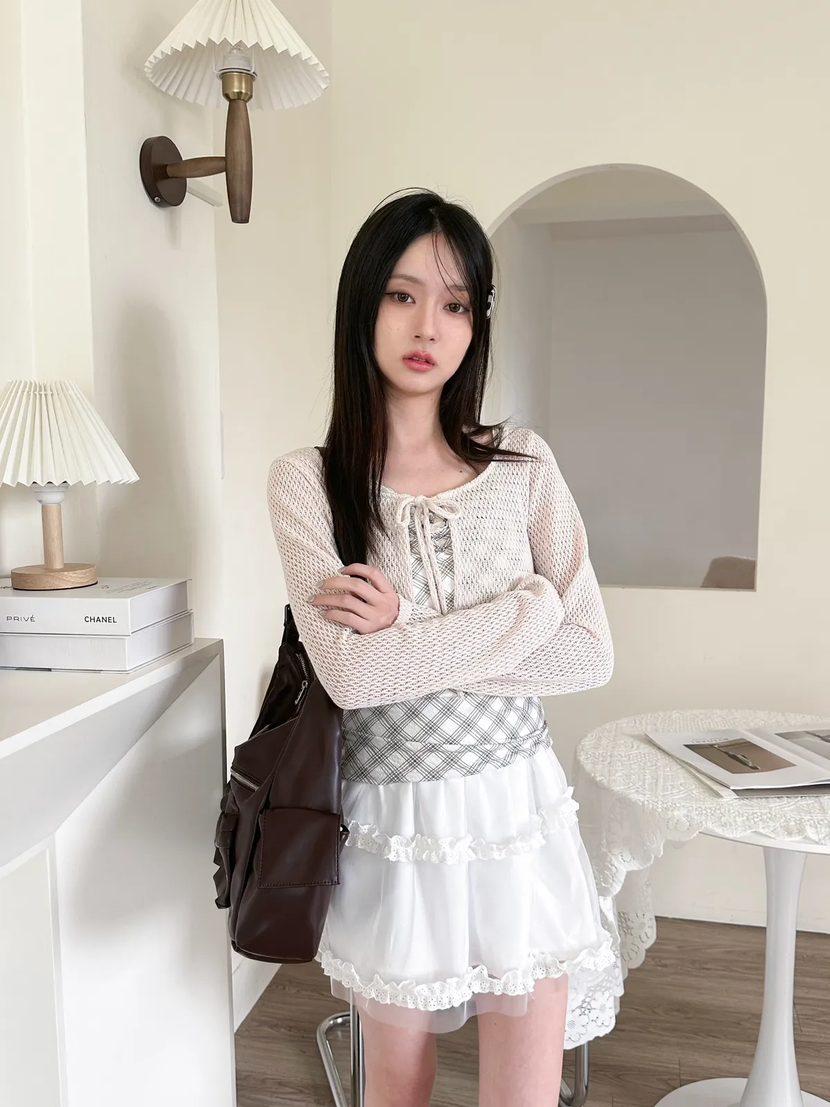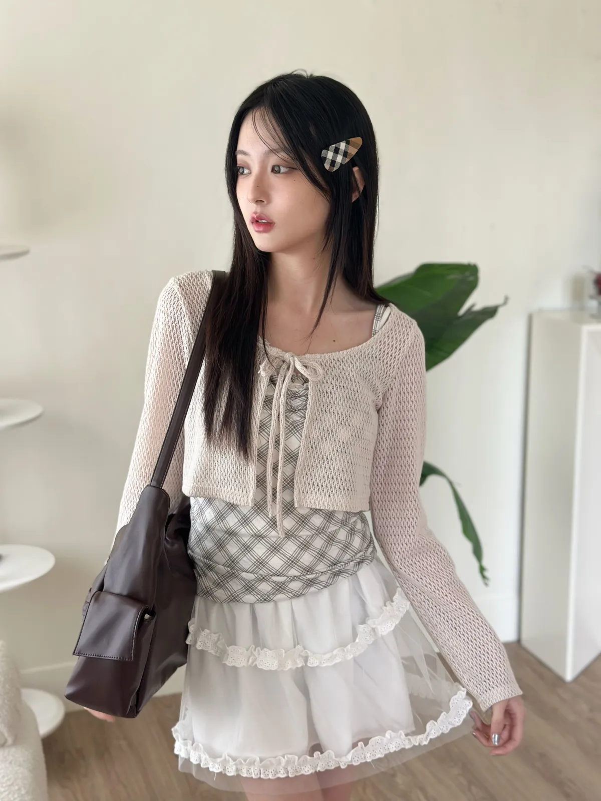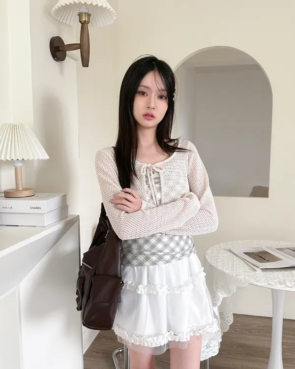 美到尖叫格紋+針織set - 2col