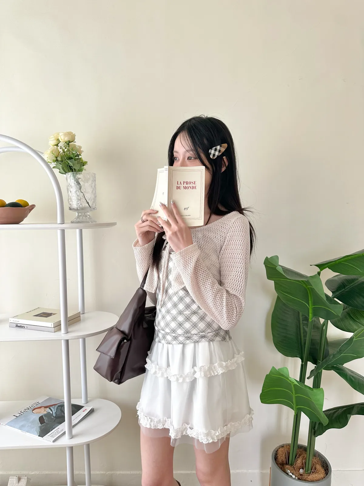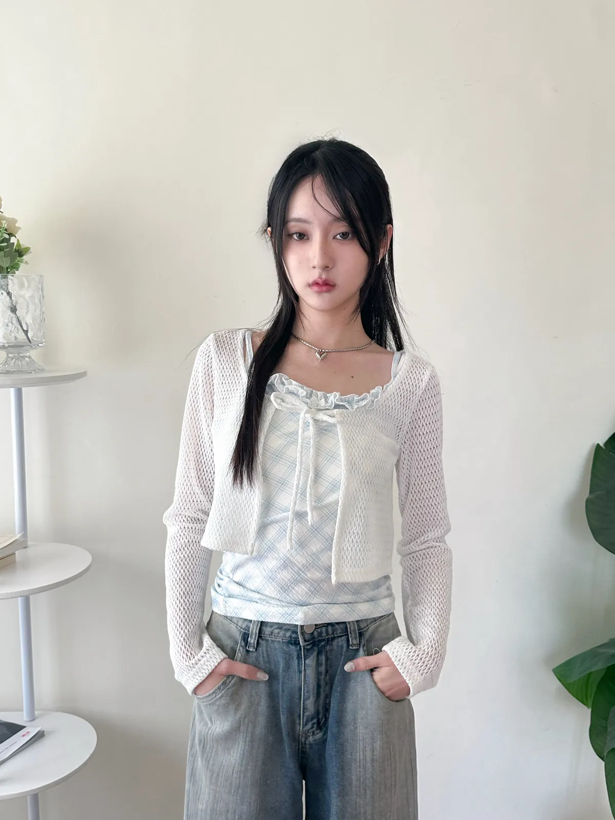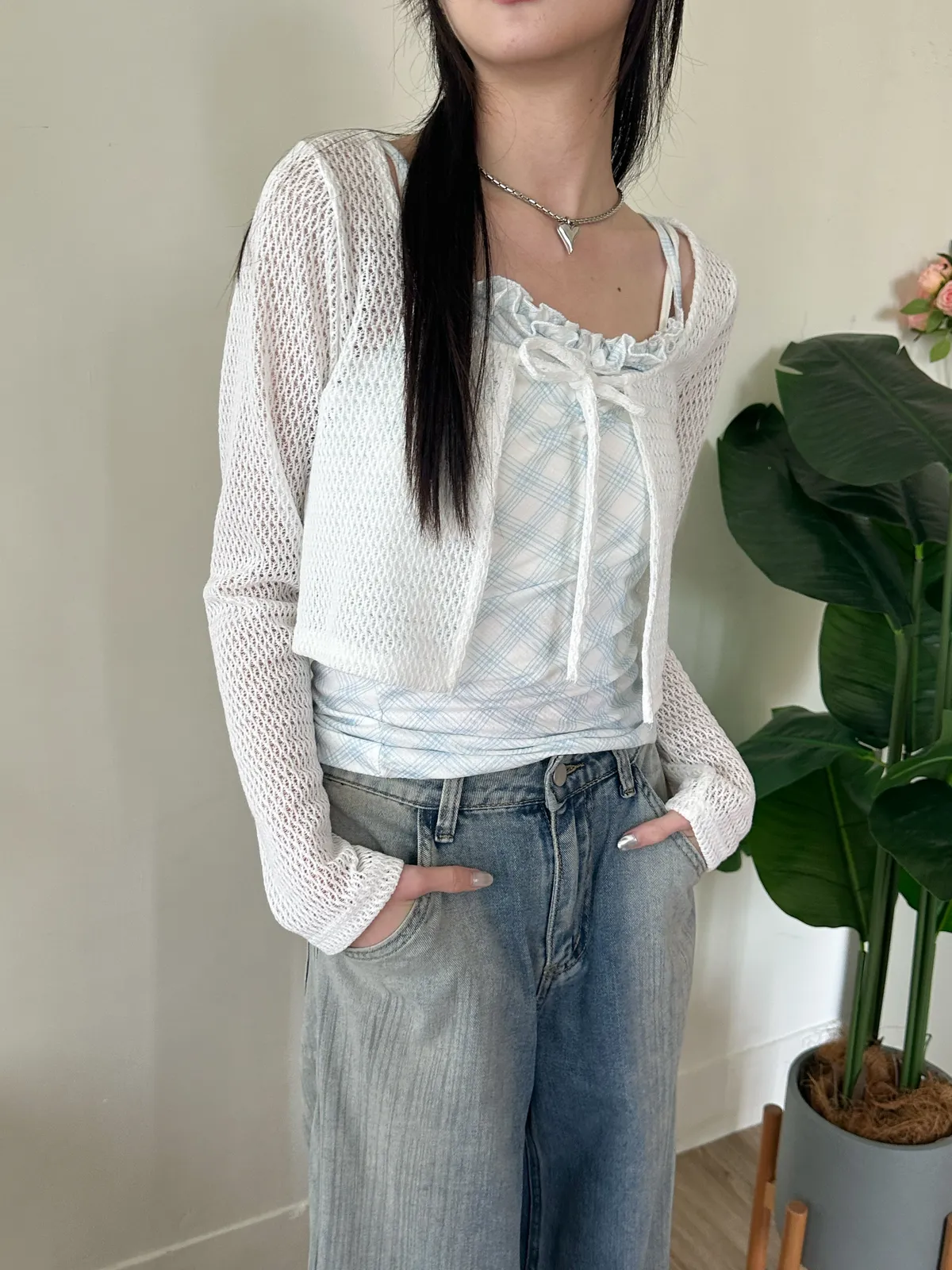 美到尖叫格紋+針織set - 2col