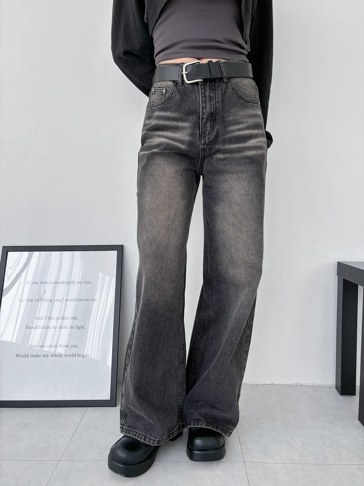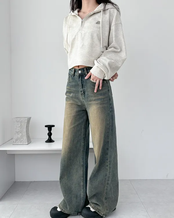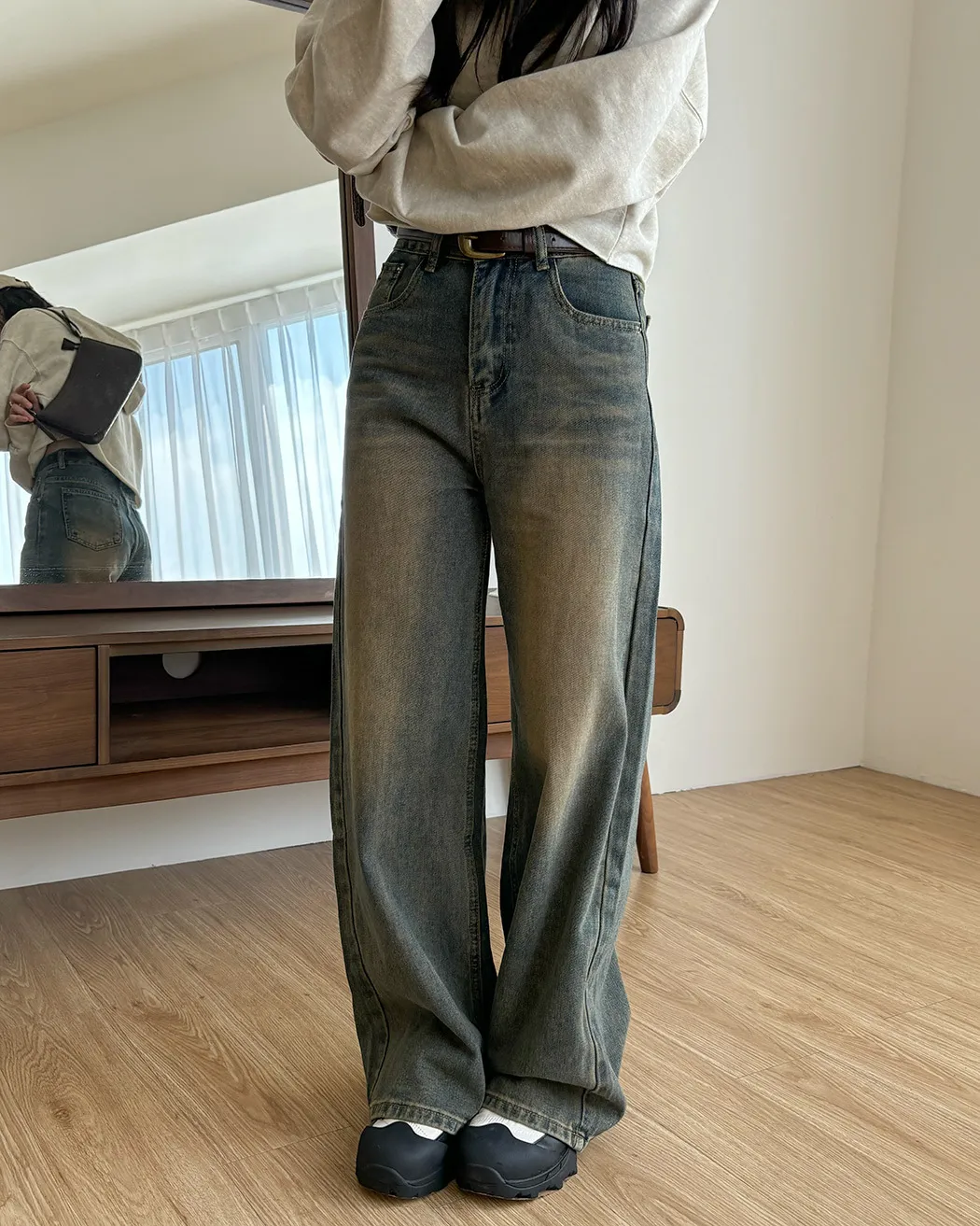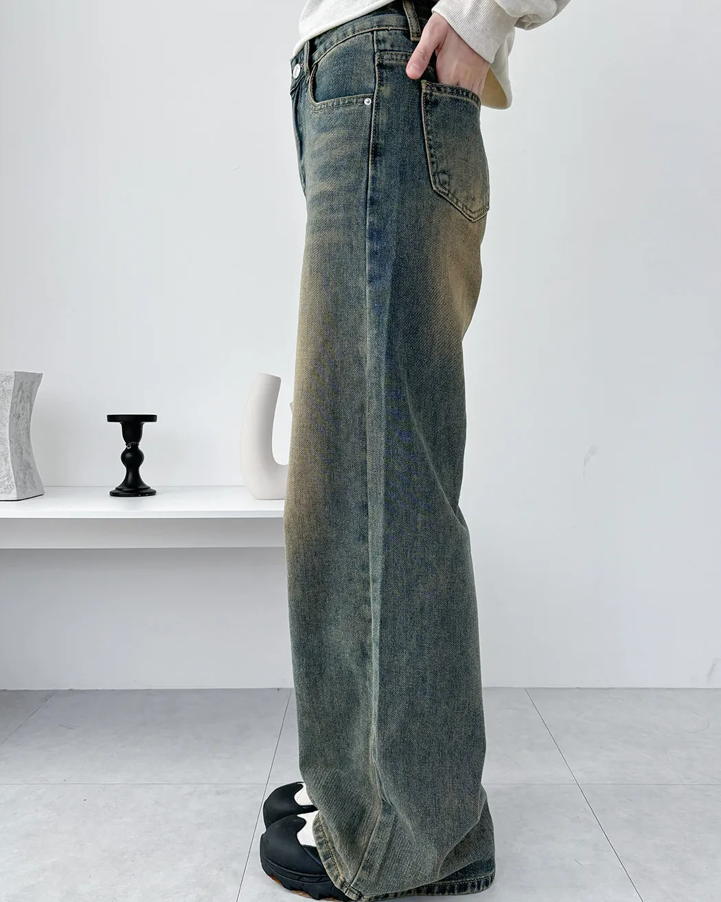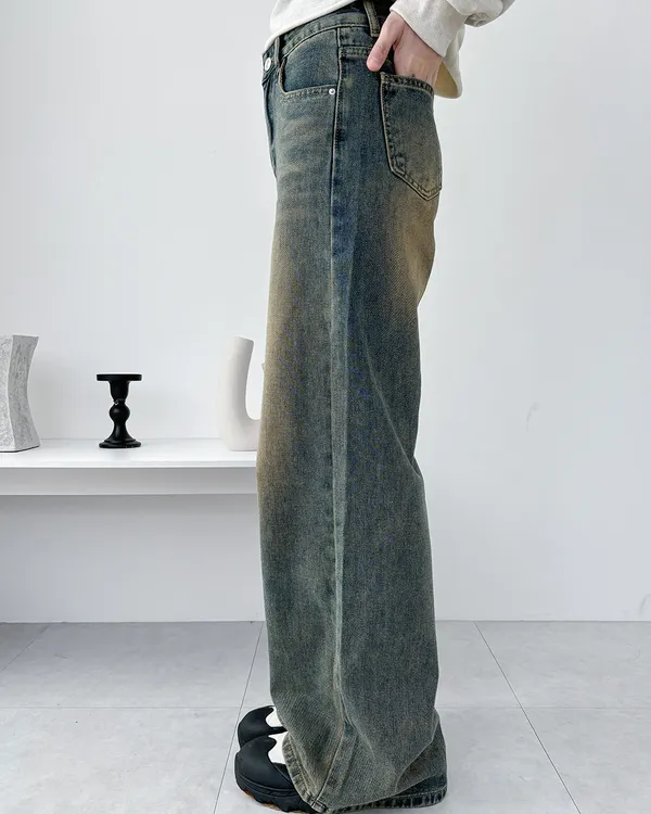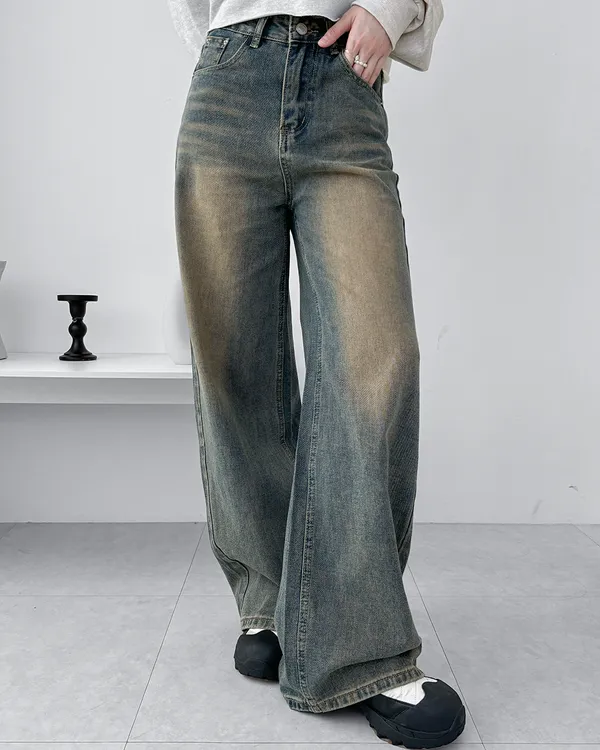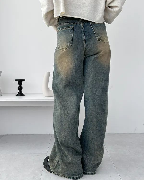 復古浪漫刷舊感寬鬆牛仔褲(2col)