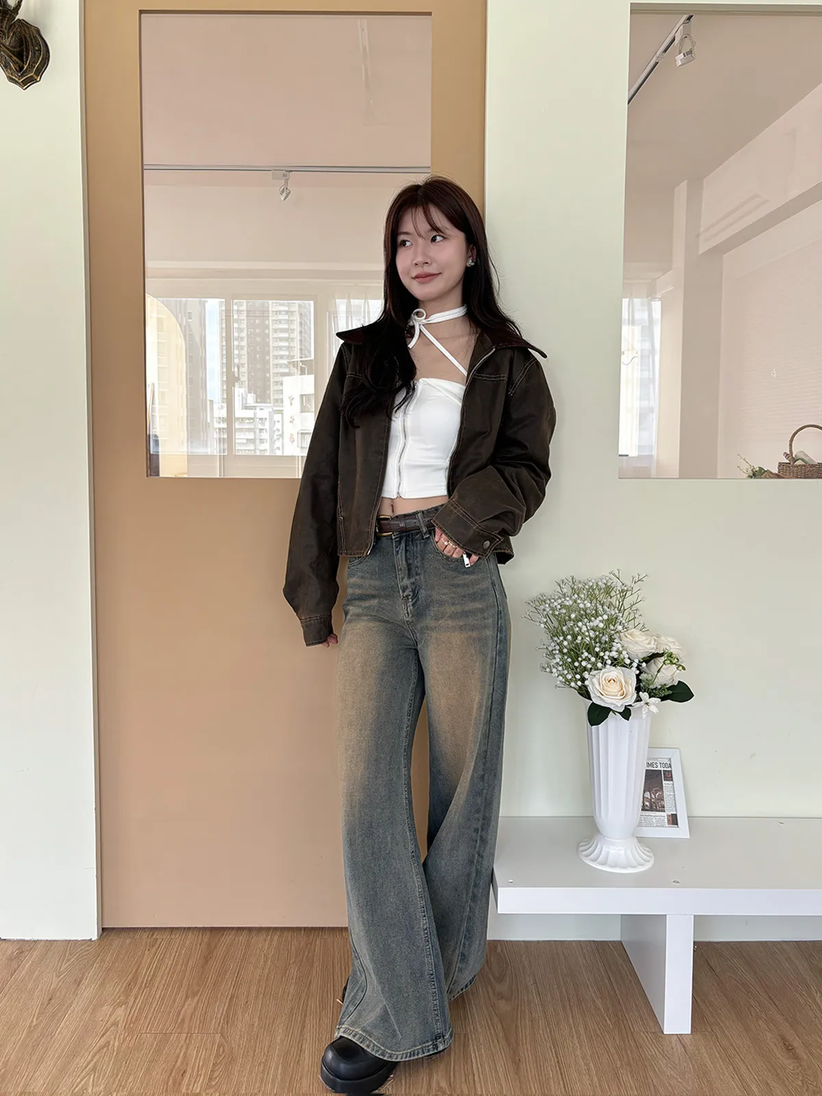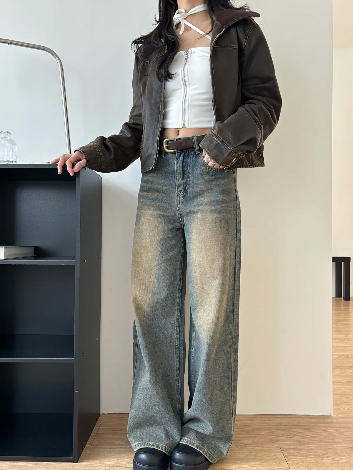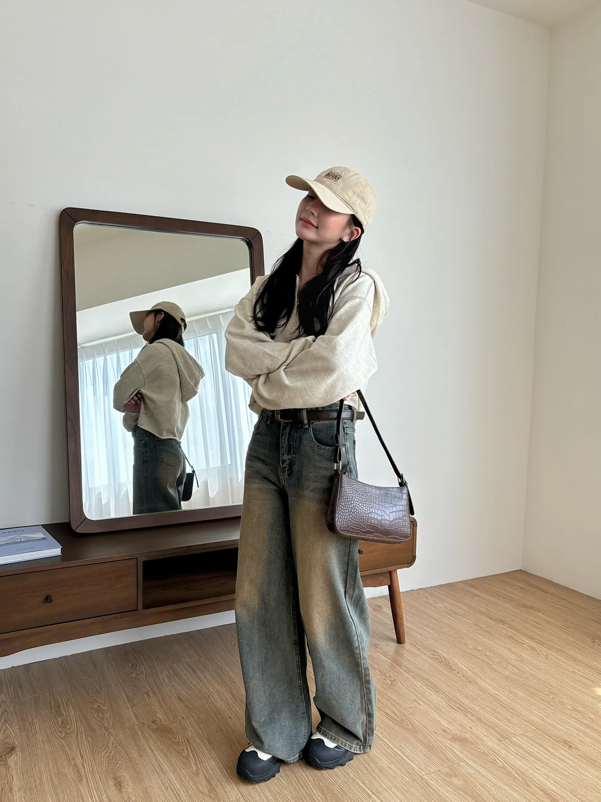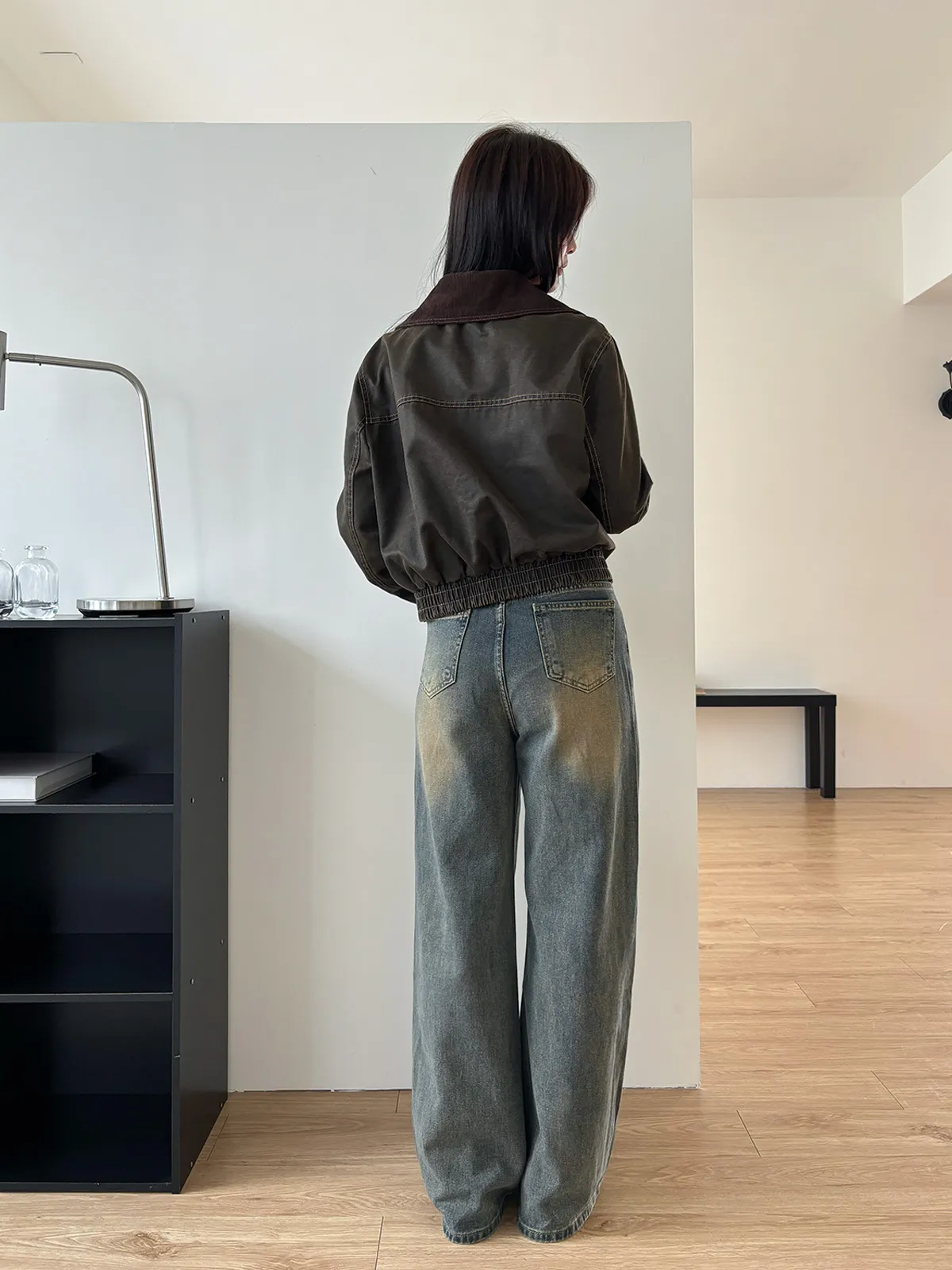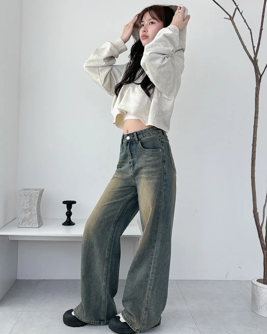 復古浪漫刷舊感寬鬆牛仔褲(2col)