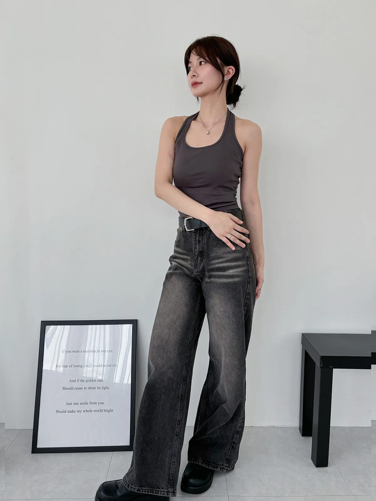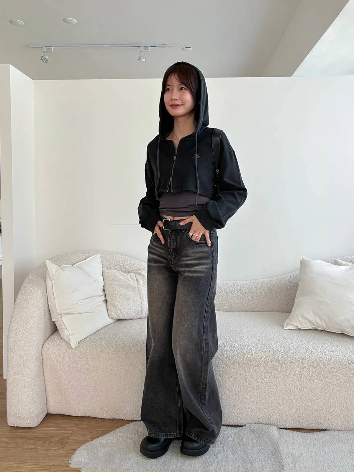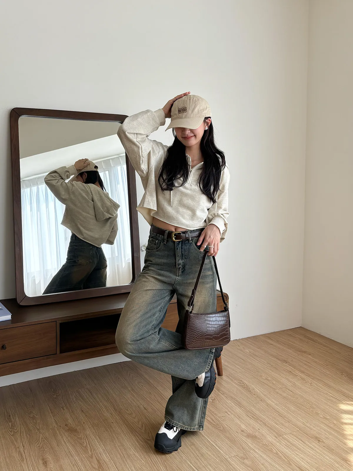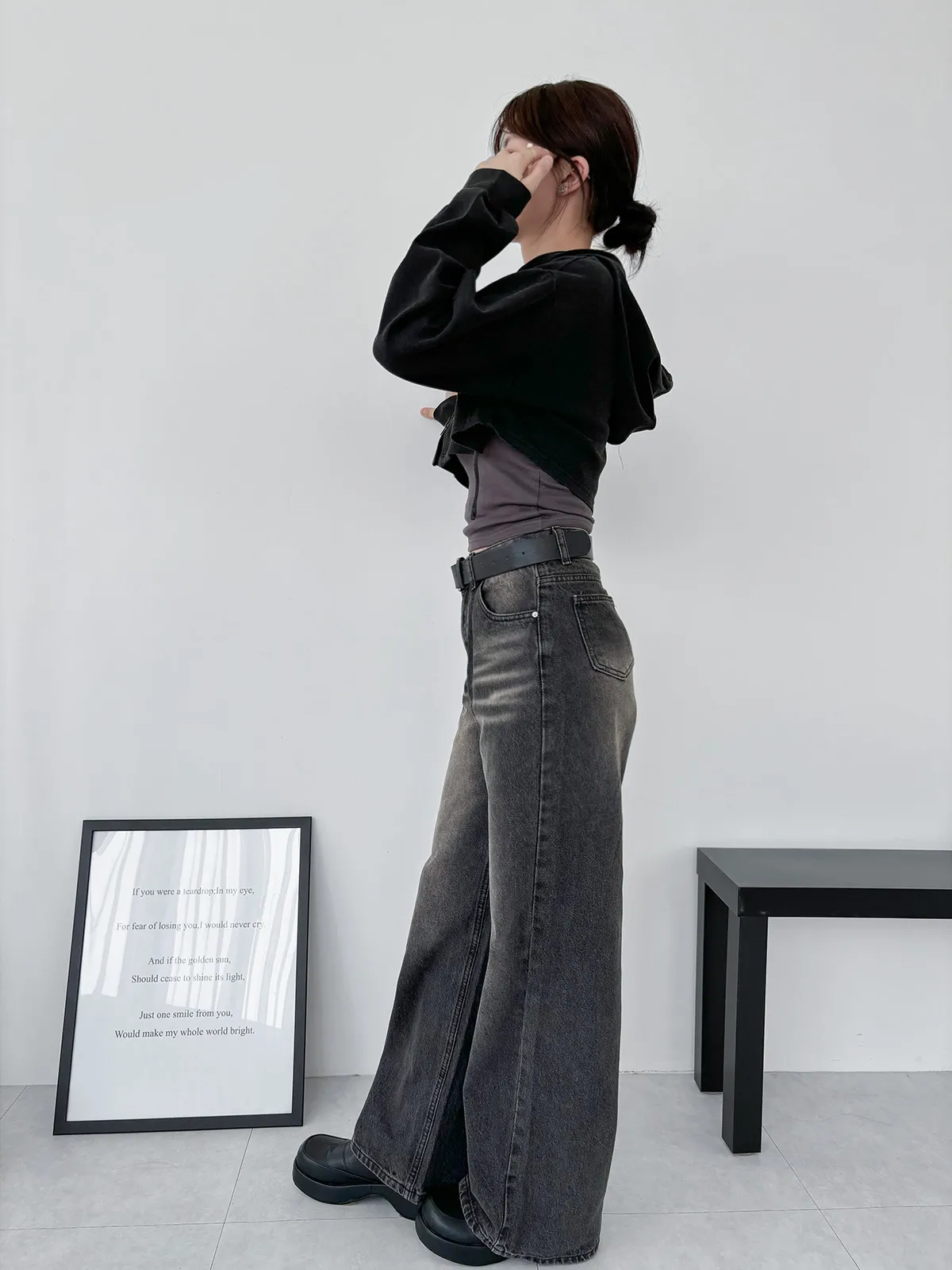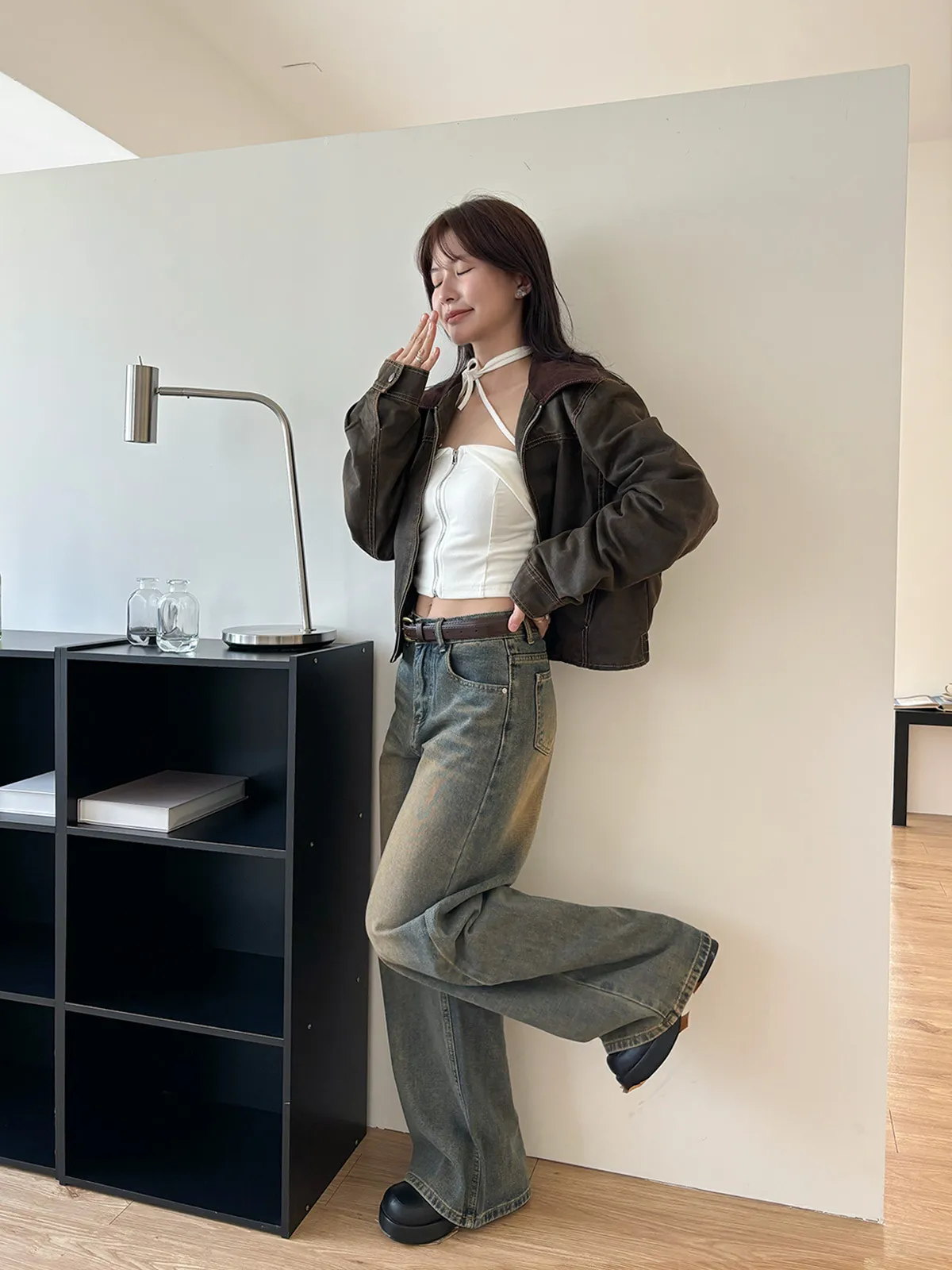 復古浪漫刷舊感寬鬆牛仔褲(2col)