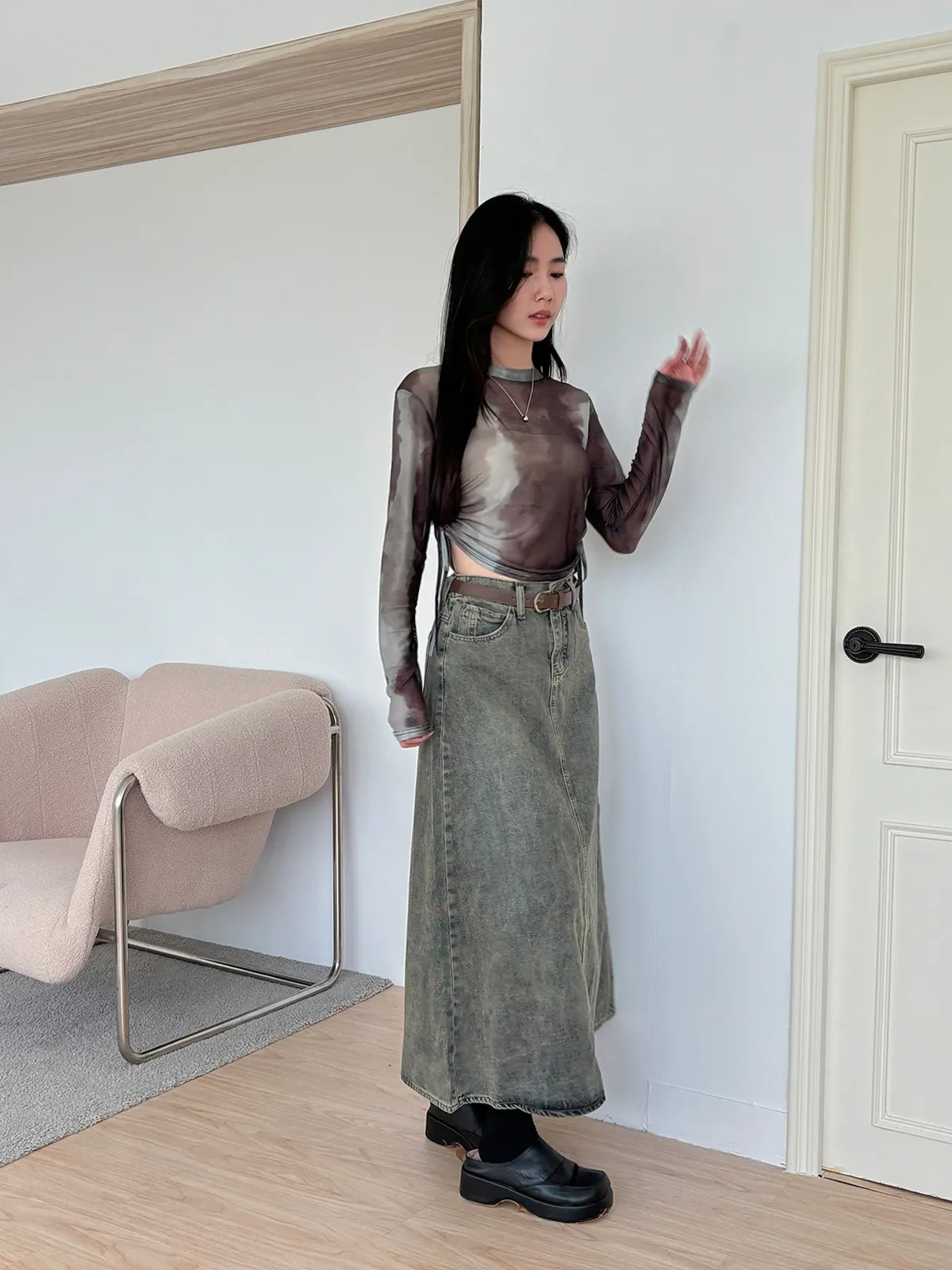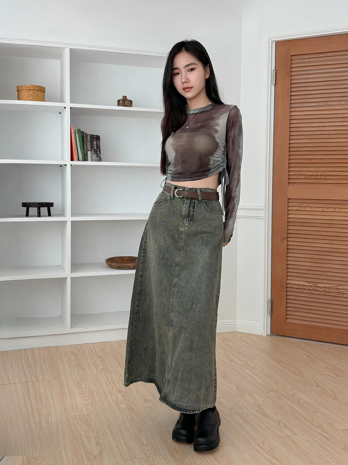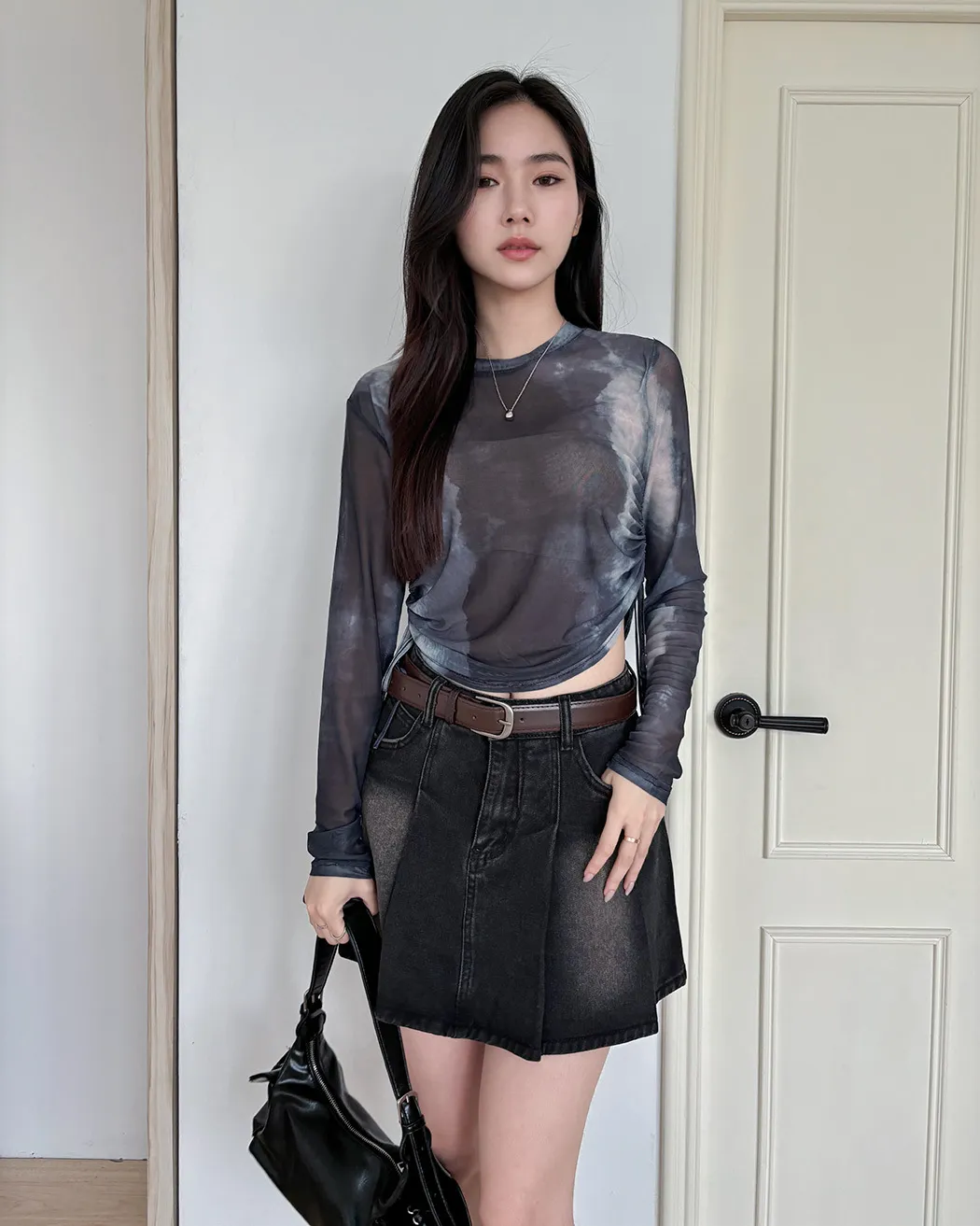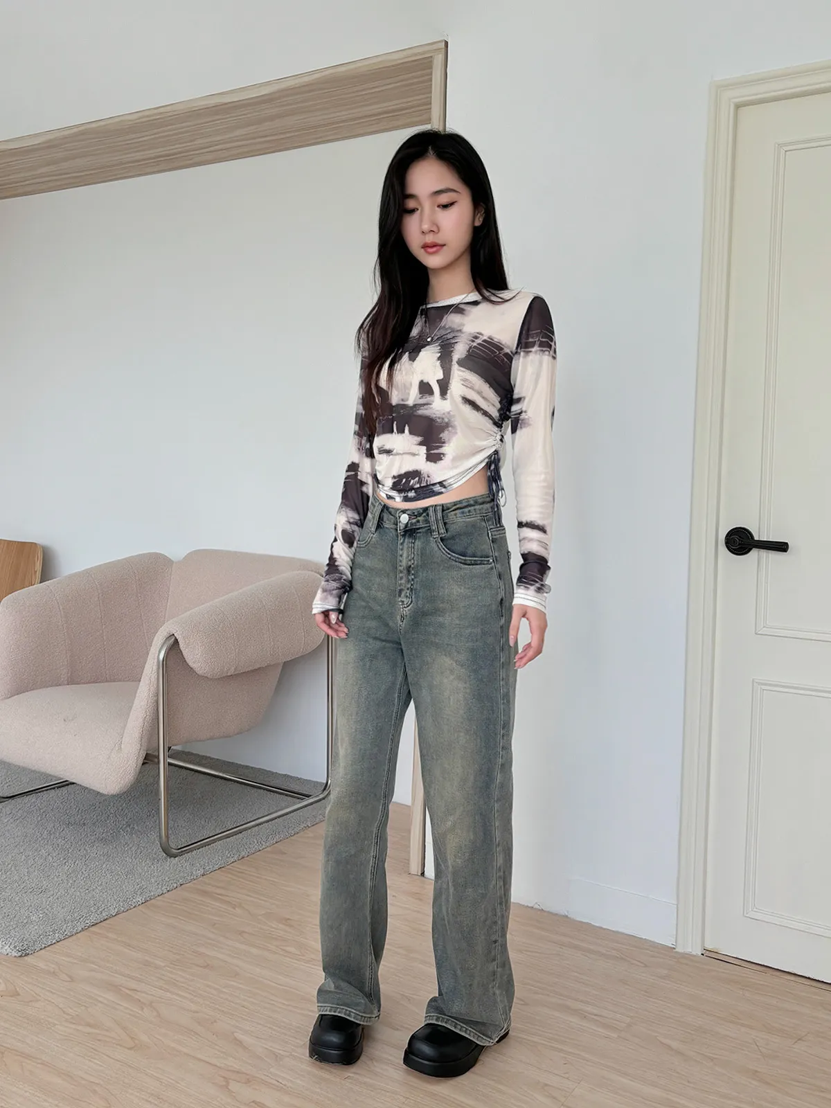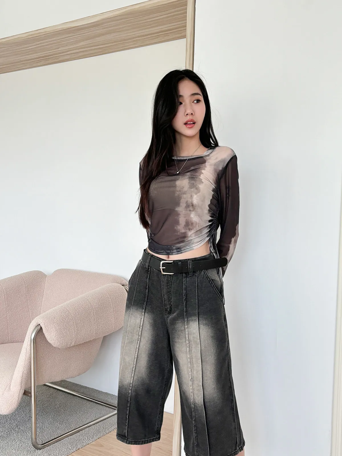 小眾設計款/渲染透膚抽繩上衣(4col)
