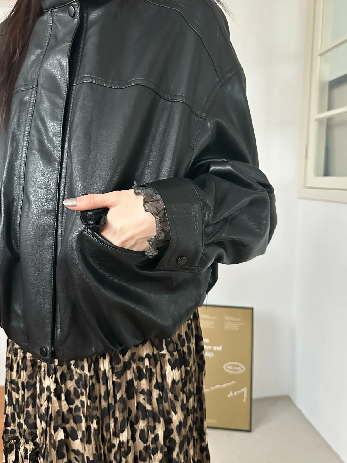 強推.ᐟ.ᐟ短款厚磅皮衣外套(1col)