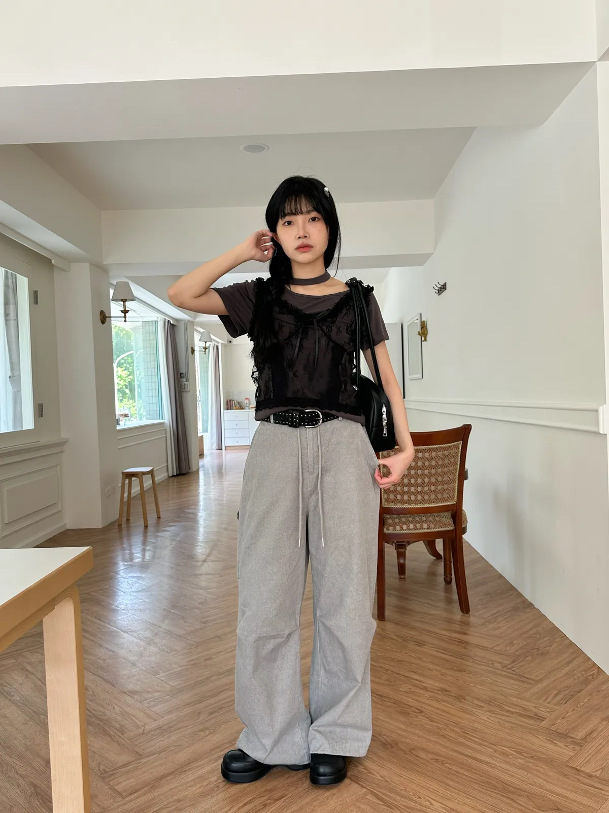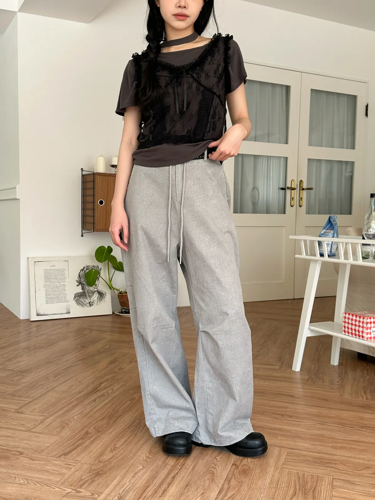 韓國人的愛 鬆緊設計簡約寬褲-3col