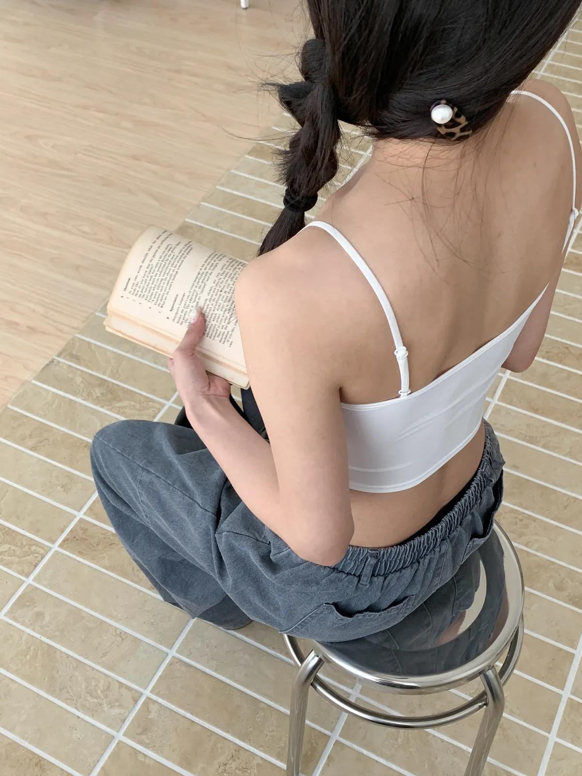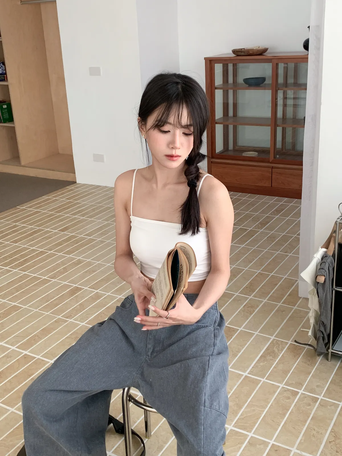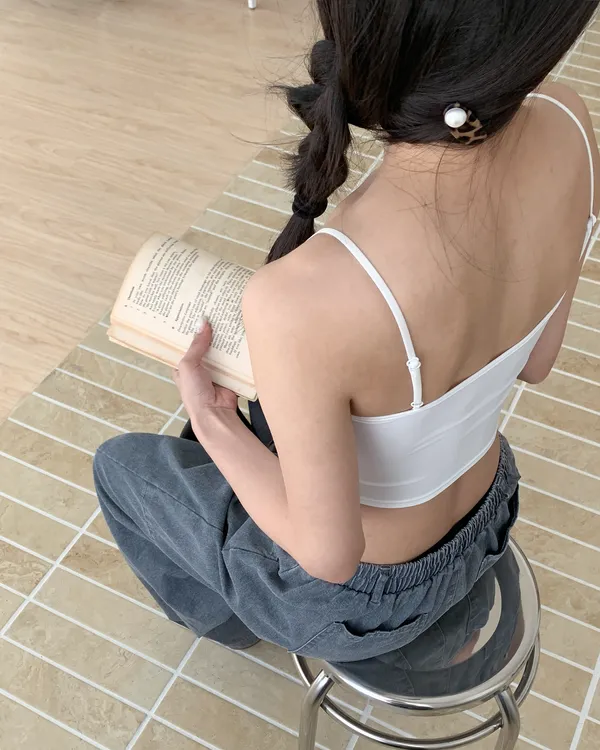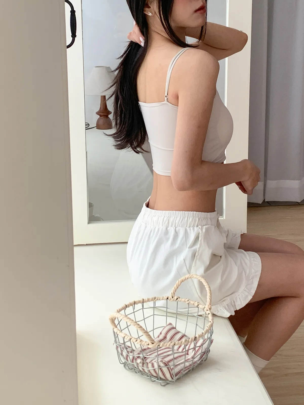 Model Size - F / 158cm, 42kg.- Cooling fabric- Sleek minimal desigh- Summer essential 白 杏 DETAIL VIEW